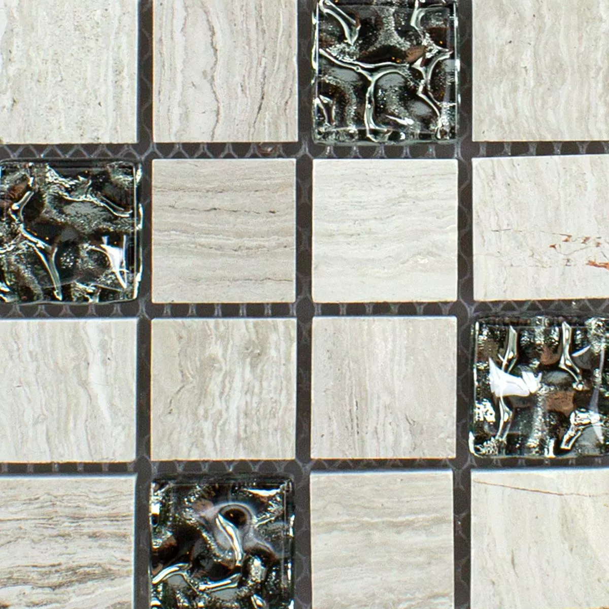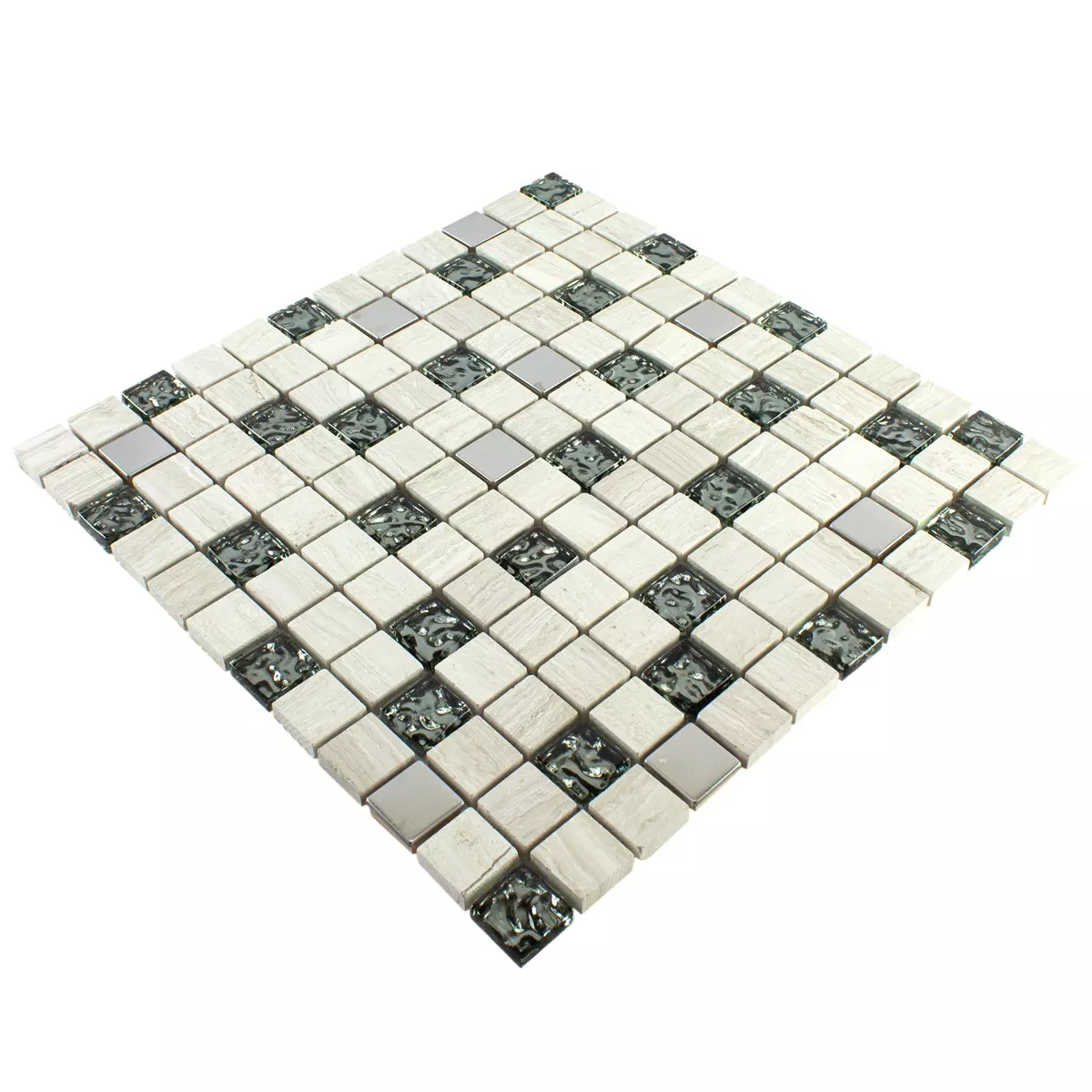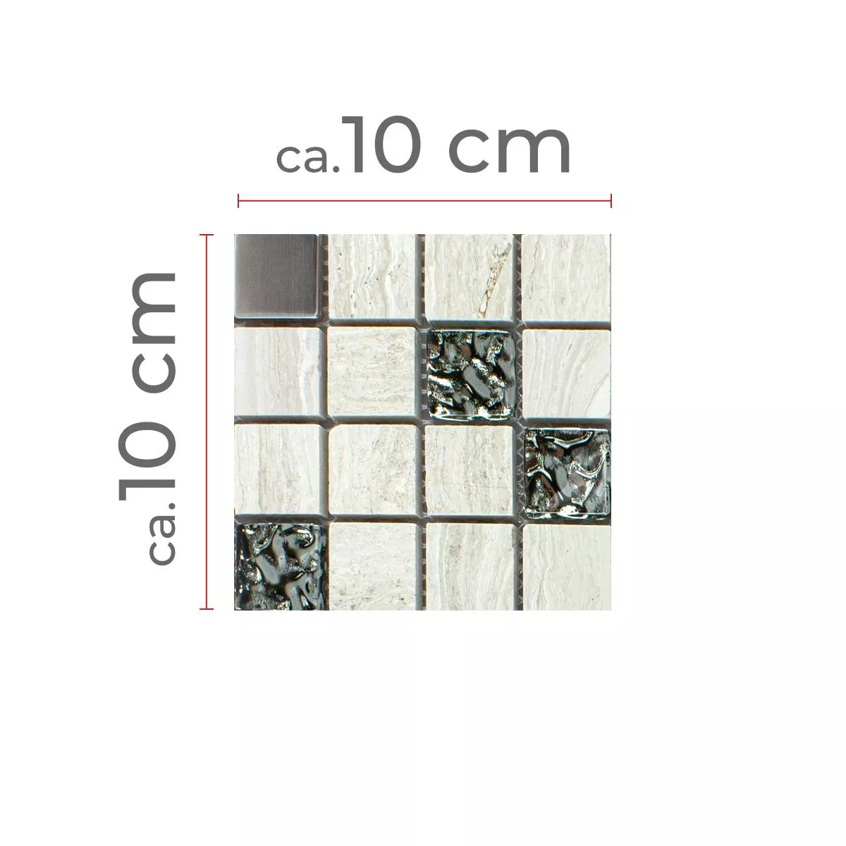 Muster von Glas Naturstein Metall Mosaikfliese Fulda Grau Silber
