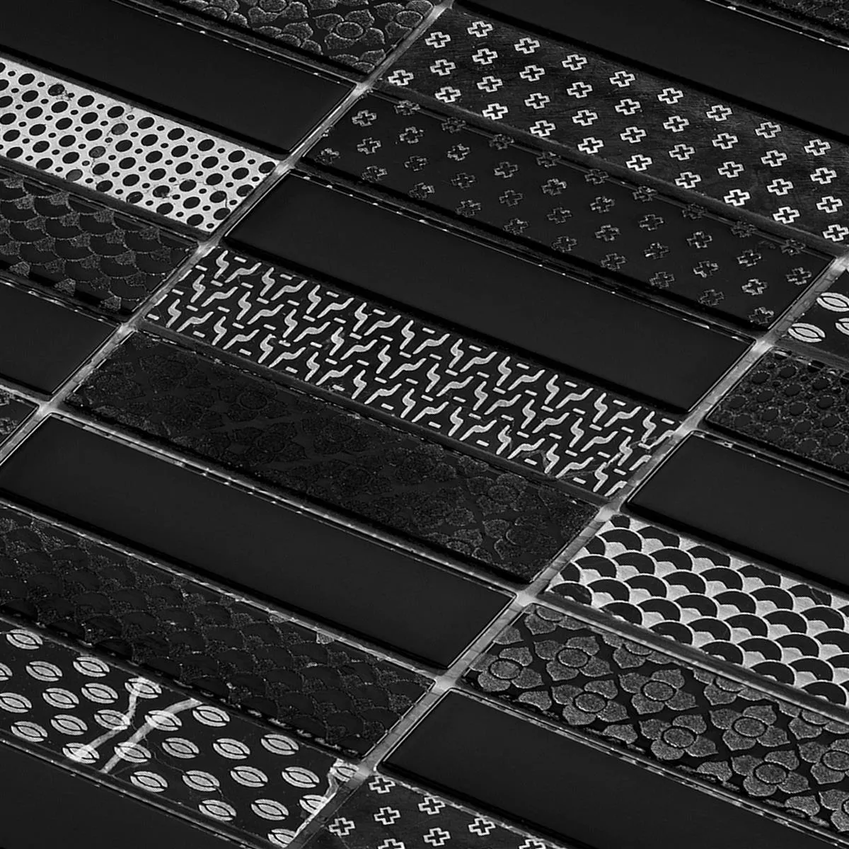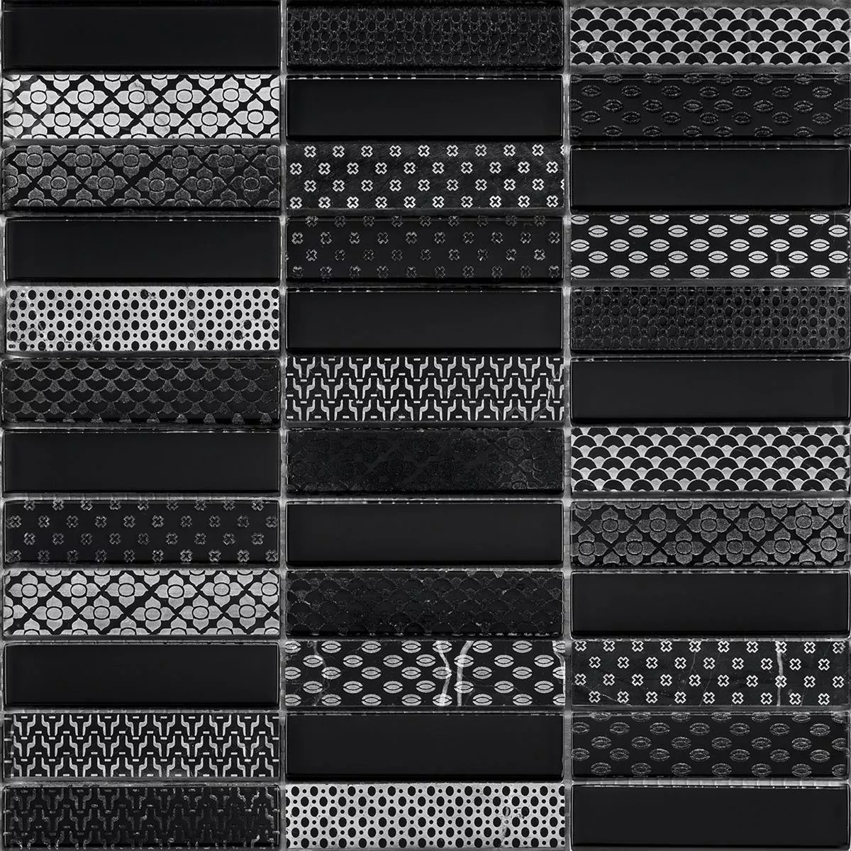 Muster von Glas Naturstein Mosaik Fliesen Celestiana Ornament Brick Schwarz Mix
