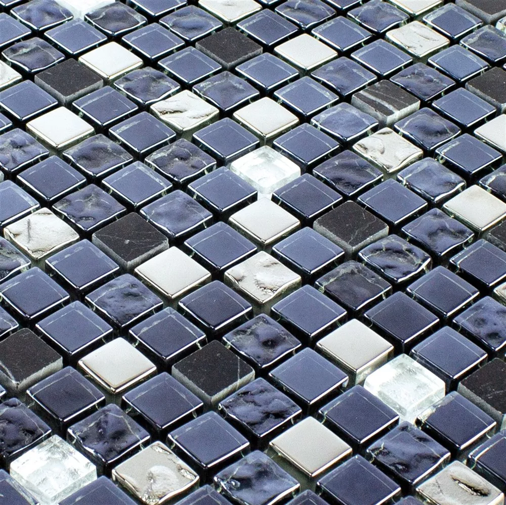 Muster von Glas Naturstein Mosaikfliese Cooktown Schwarz Silber