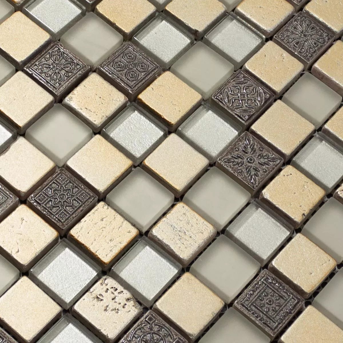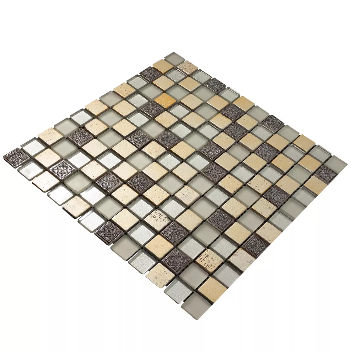 Muster von Glas Naturstein Mosaikfliesen Shibuya Gold Beige Braun