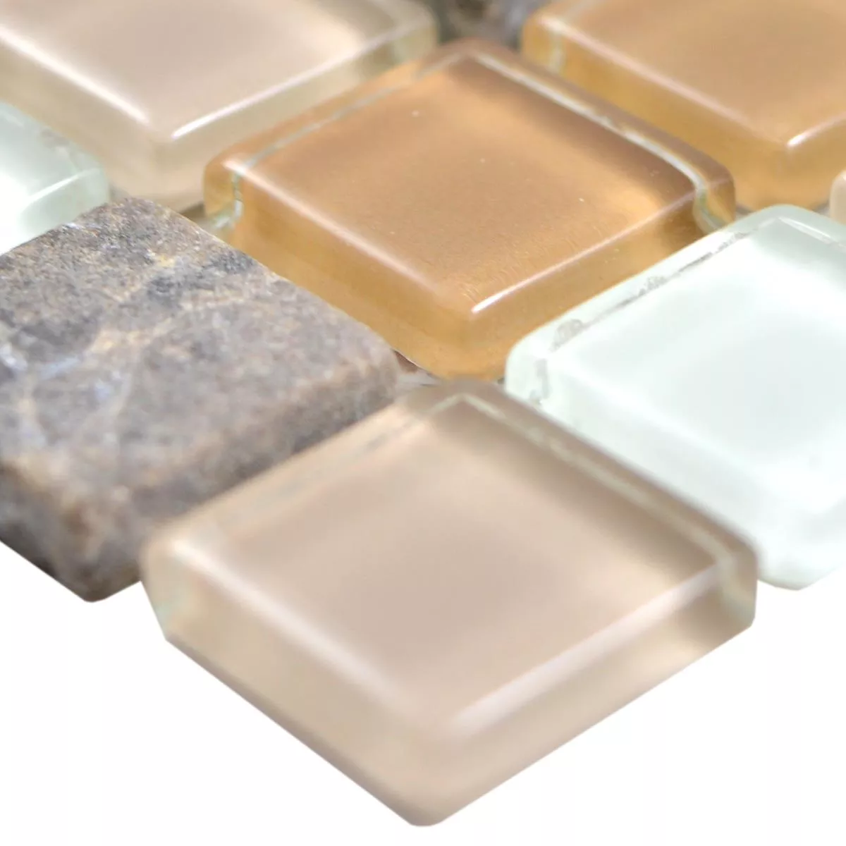 Muster von Glas Naturstein Mosaikfliesen Zekova Beige Braun Weiß