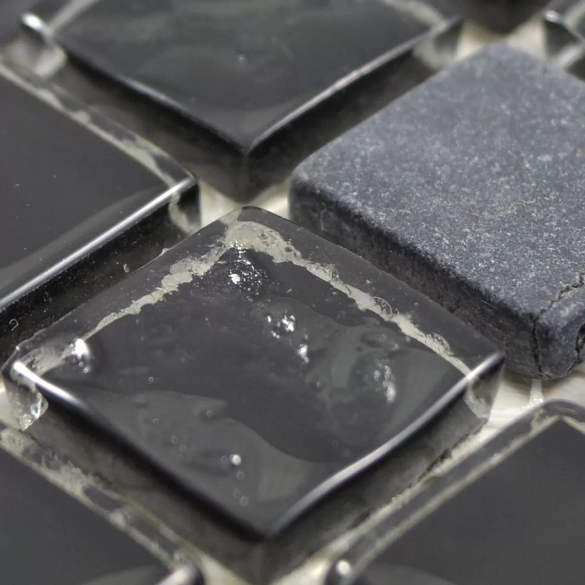 Muster von Glas Naturstein Mosaikfliesen Zekova Schwarz Grau