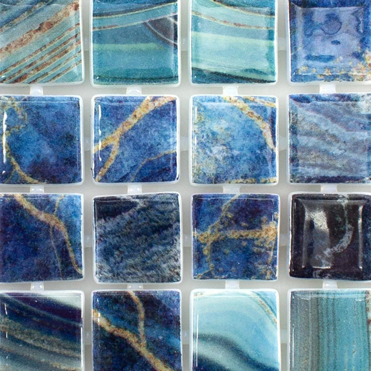 Muster von Glas Schwimmbad Mosaik Baltic Blau Türkis 25x25mm
