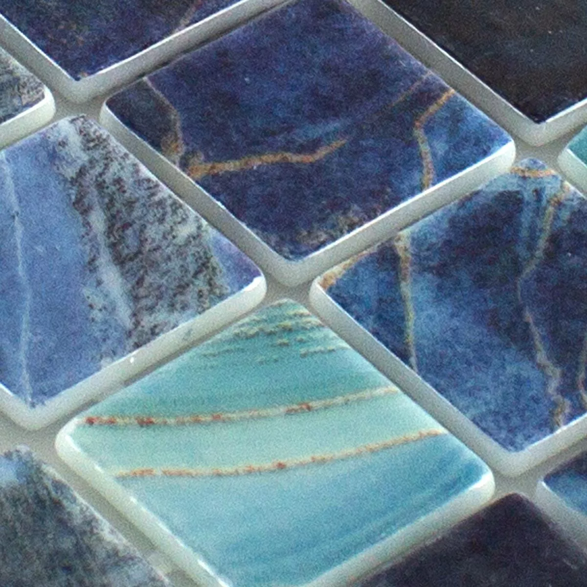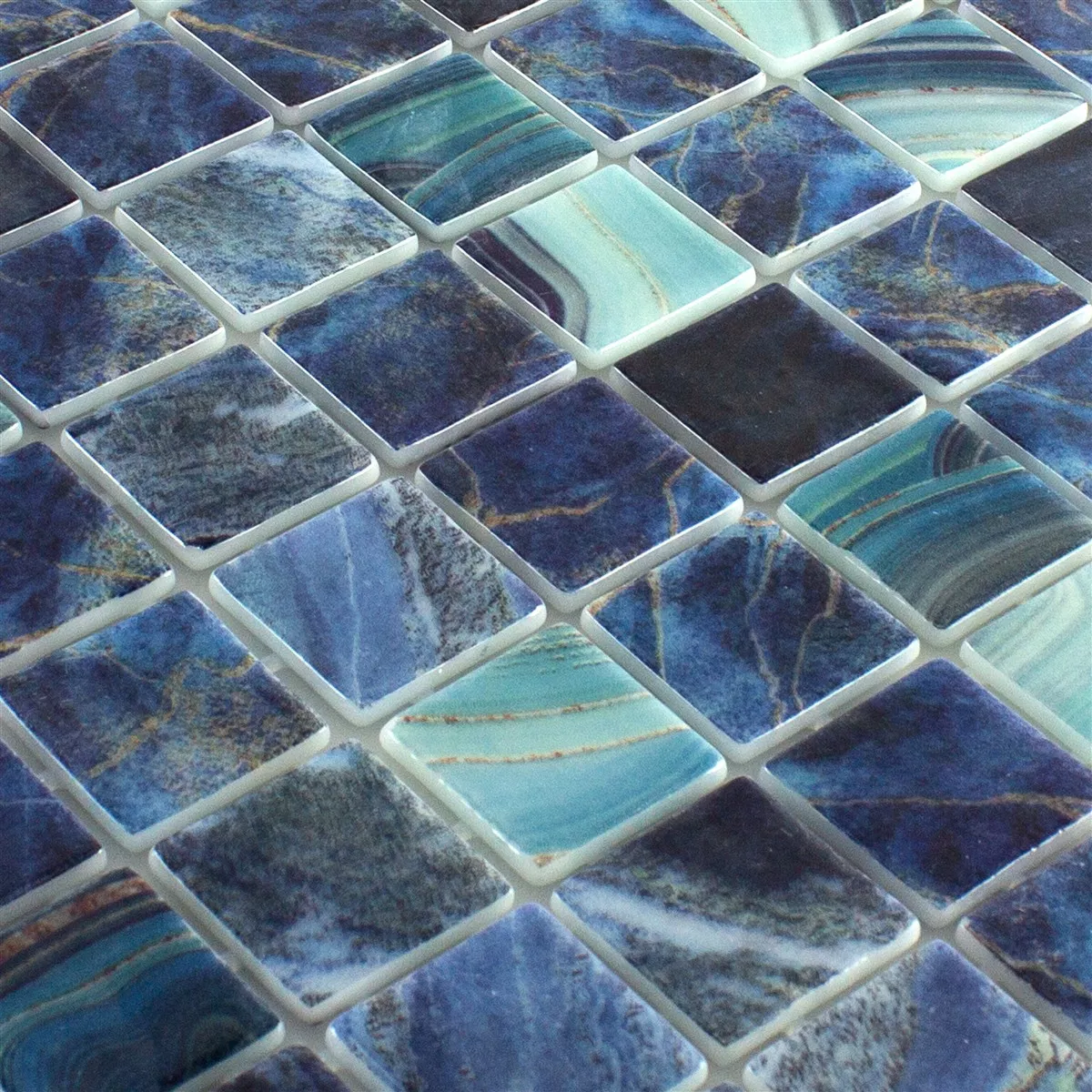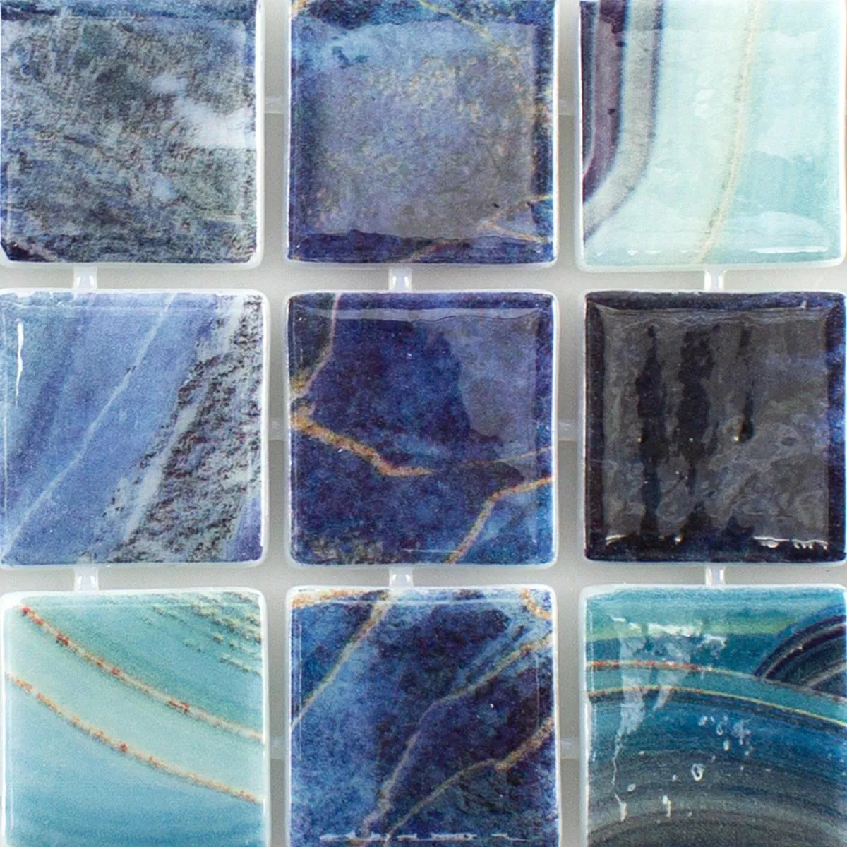 Muster von Glas Schwimmbad Mosaik Baltic Blau Türkis 38x38mm