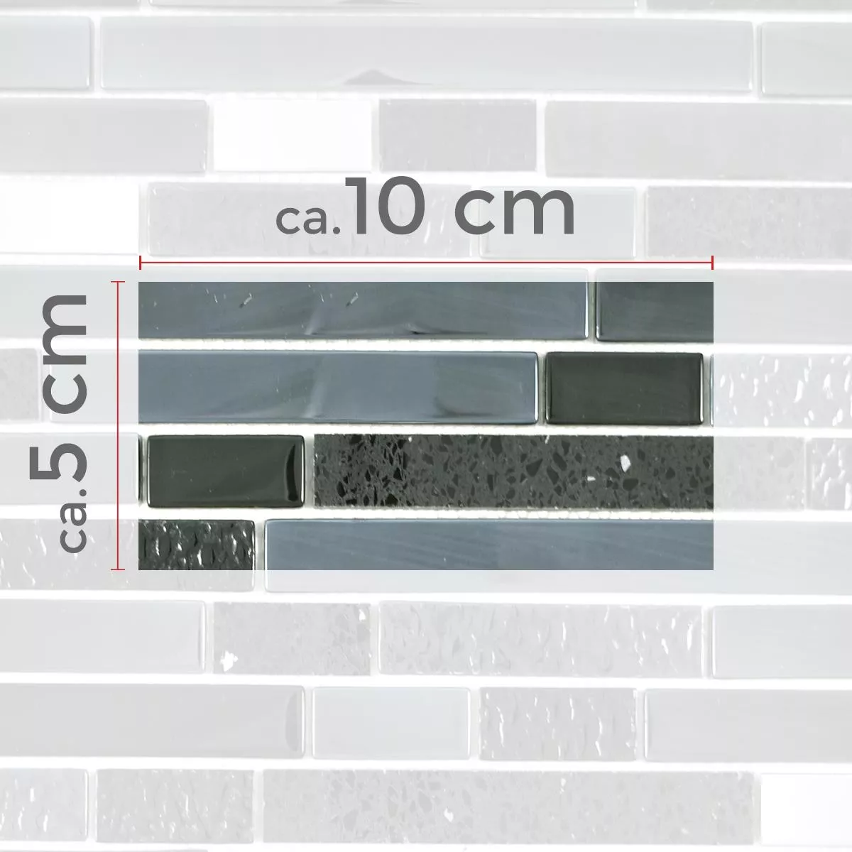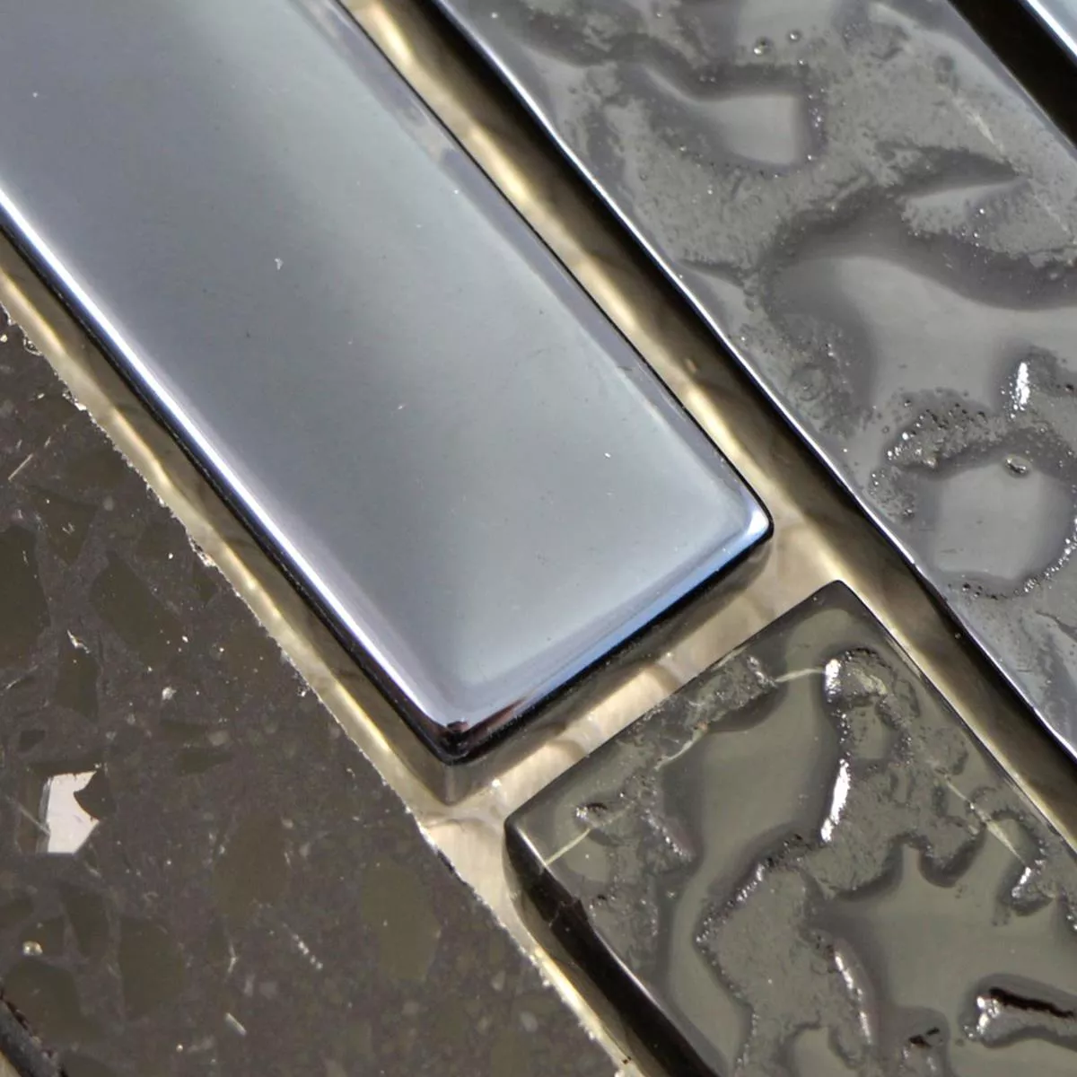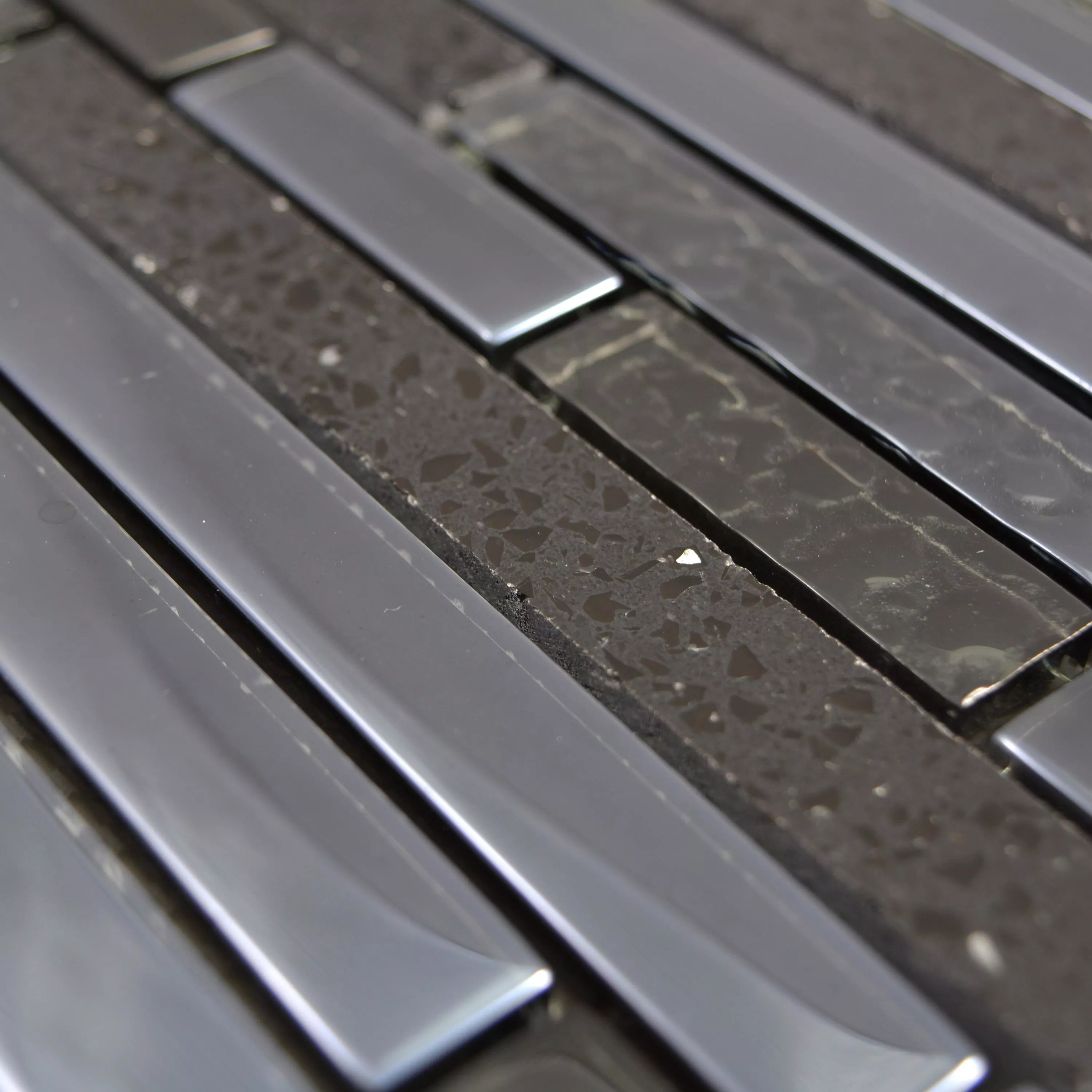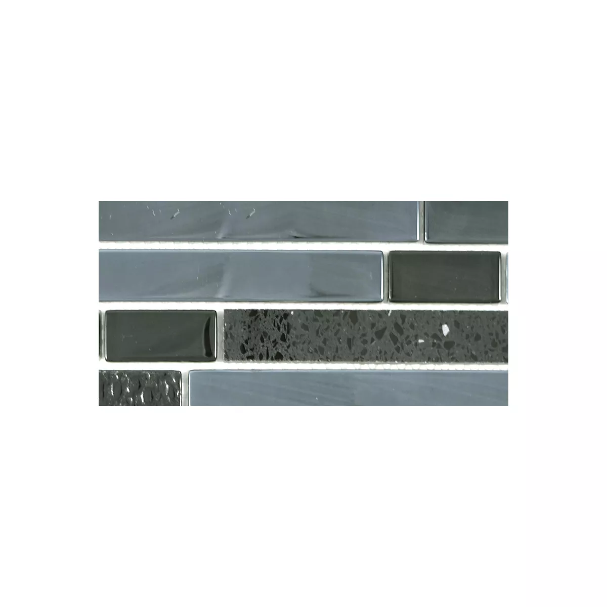 Muster von Glas Stein Edelstahl Mosaik Wilmont Schwarz Silber