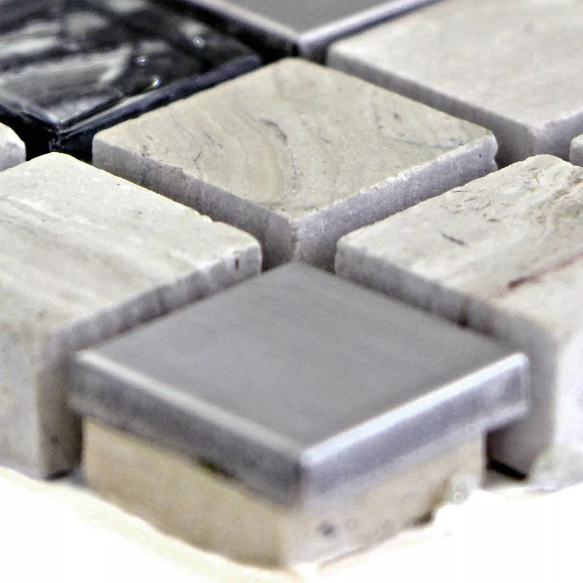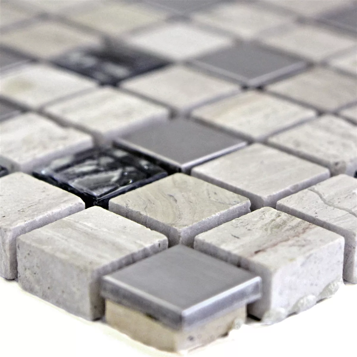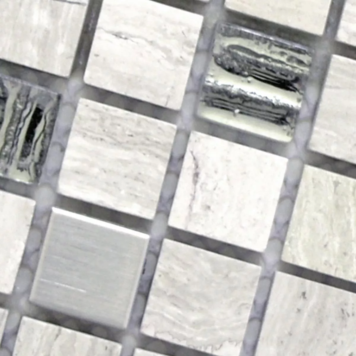 Muster von Glas Stein Stahl Mosaikfliesen Elektra Grau Quadrat