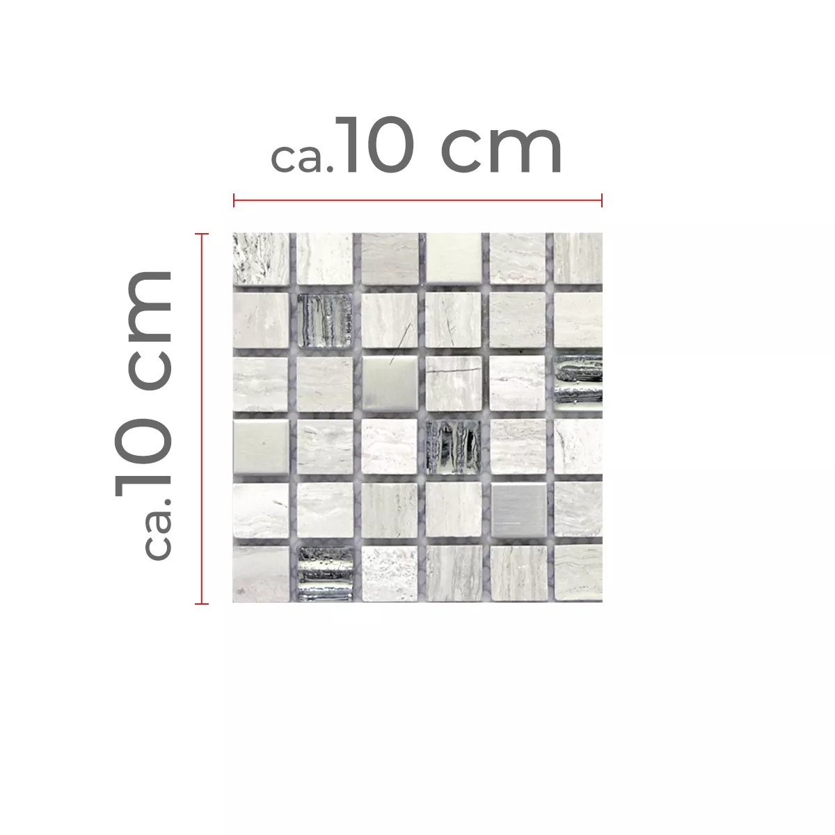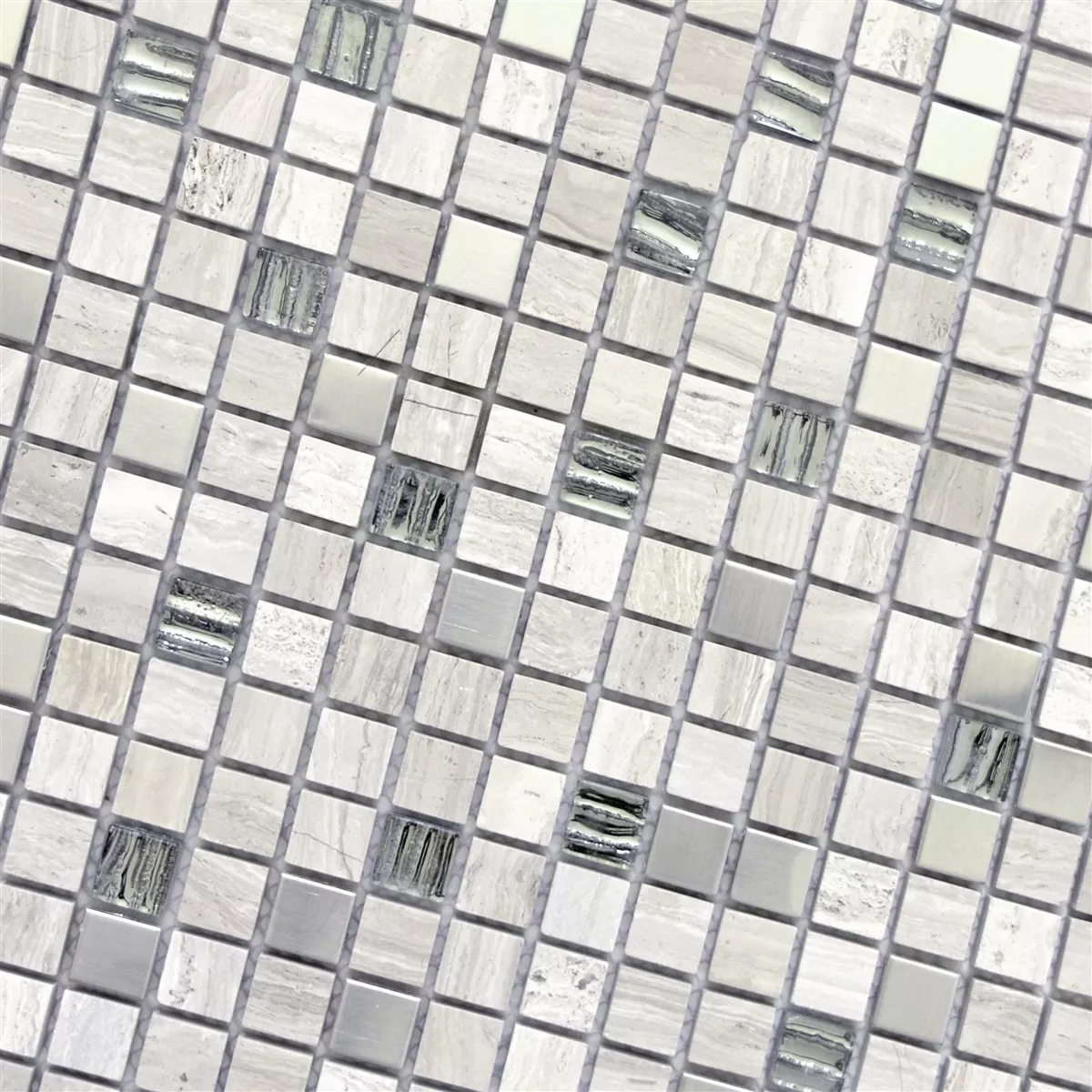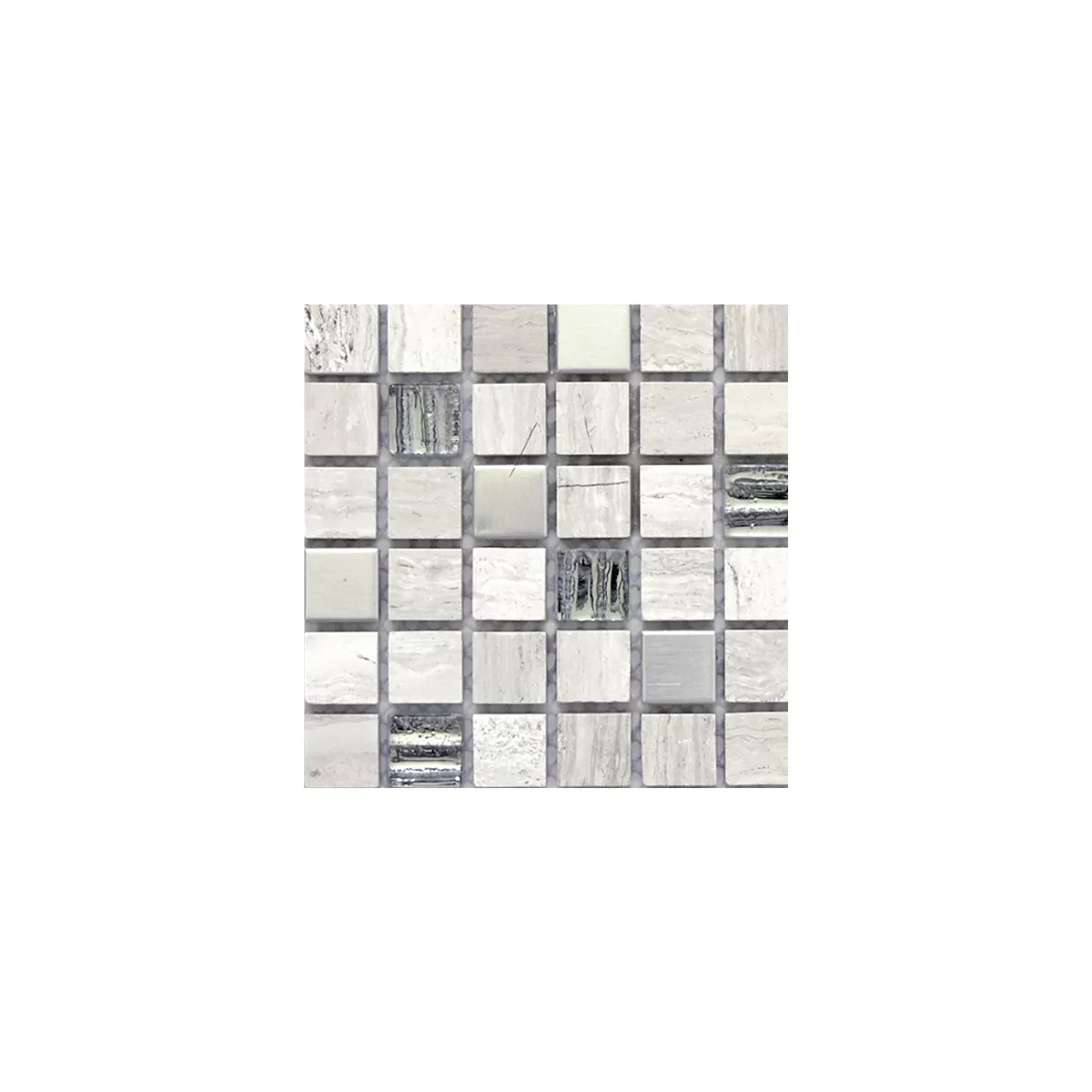 Muster von Glas Stein Stahl Mosaikfliesen Elektra Grau Quadrat