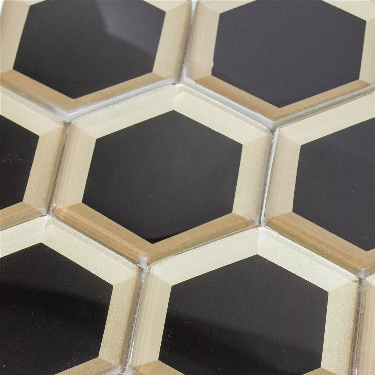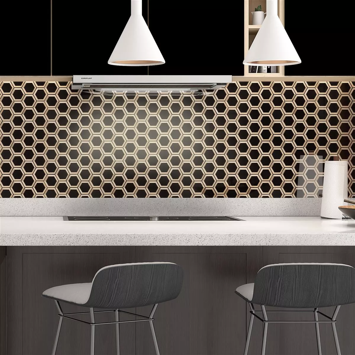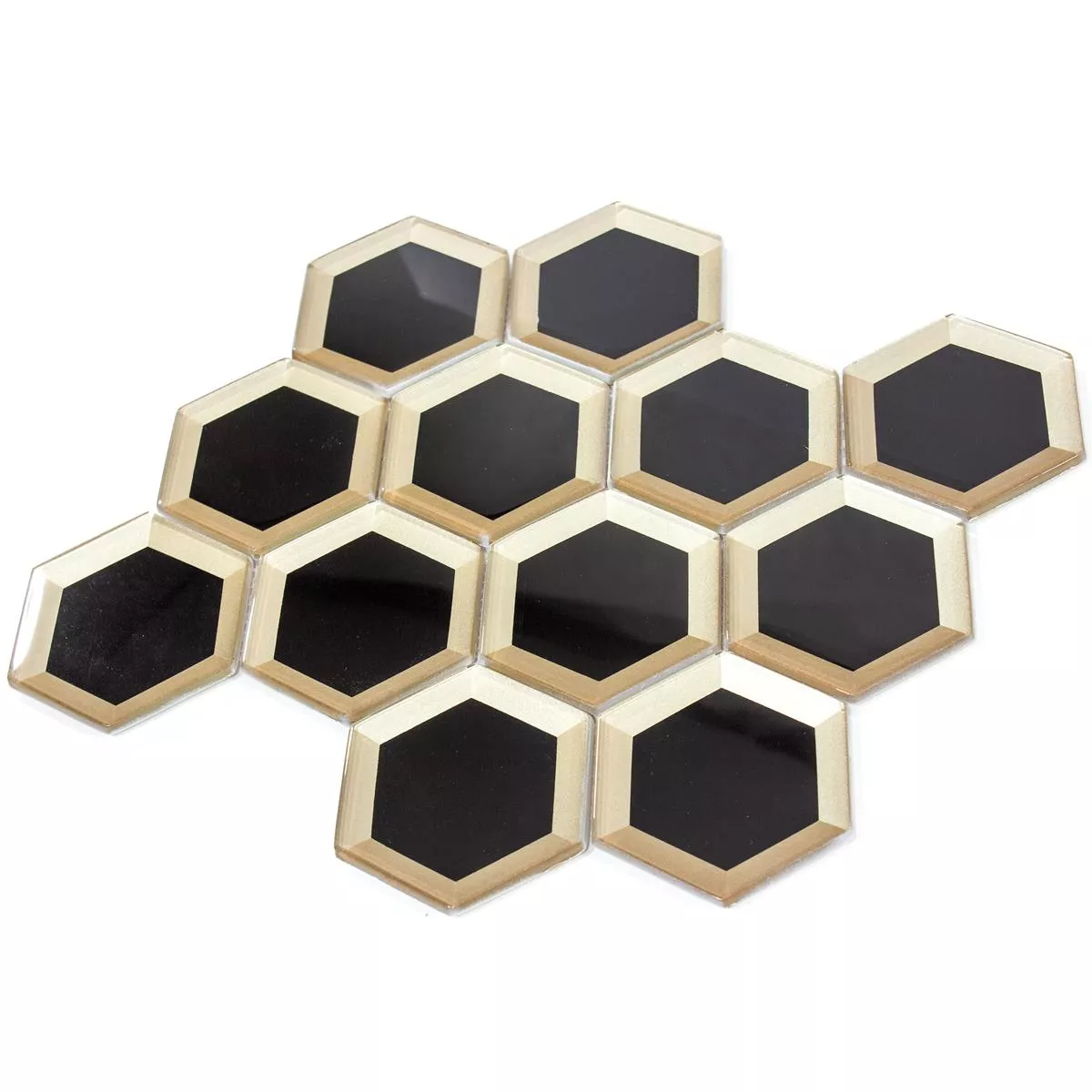 Muster von Glasmosaik Arnold Hexagon Schwarz Gold