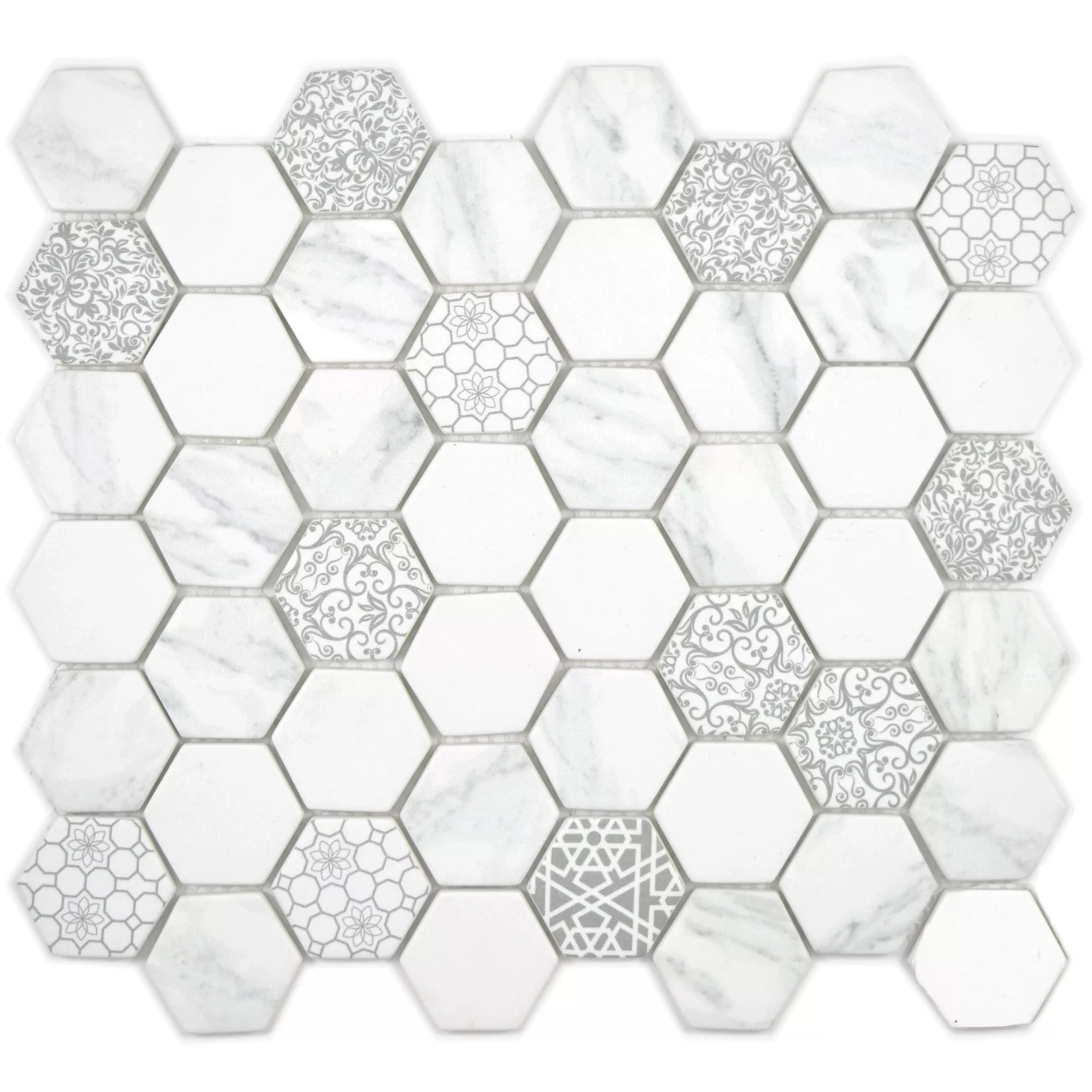 Muster von Glasmosaik Fliesen Acapella Carrara Hexagon