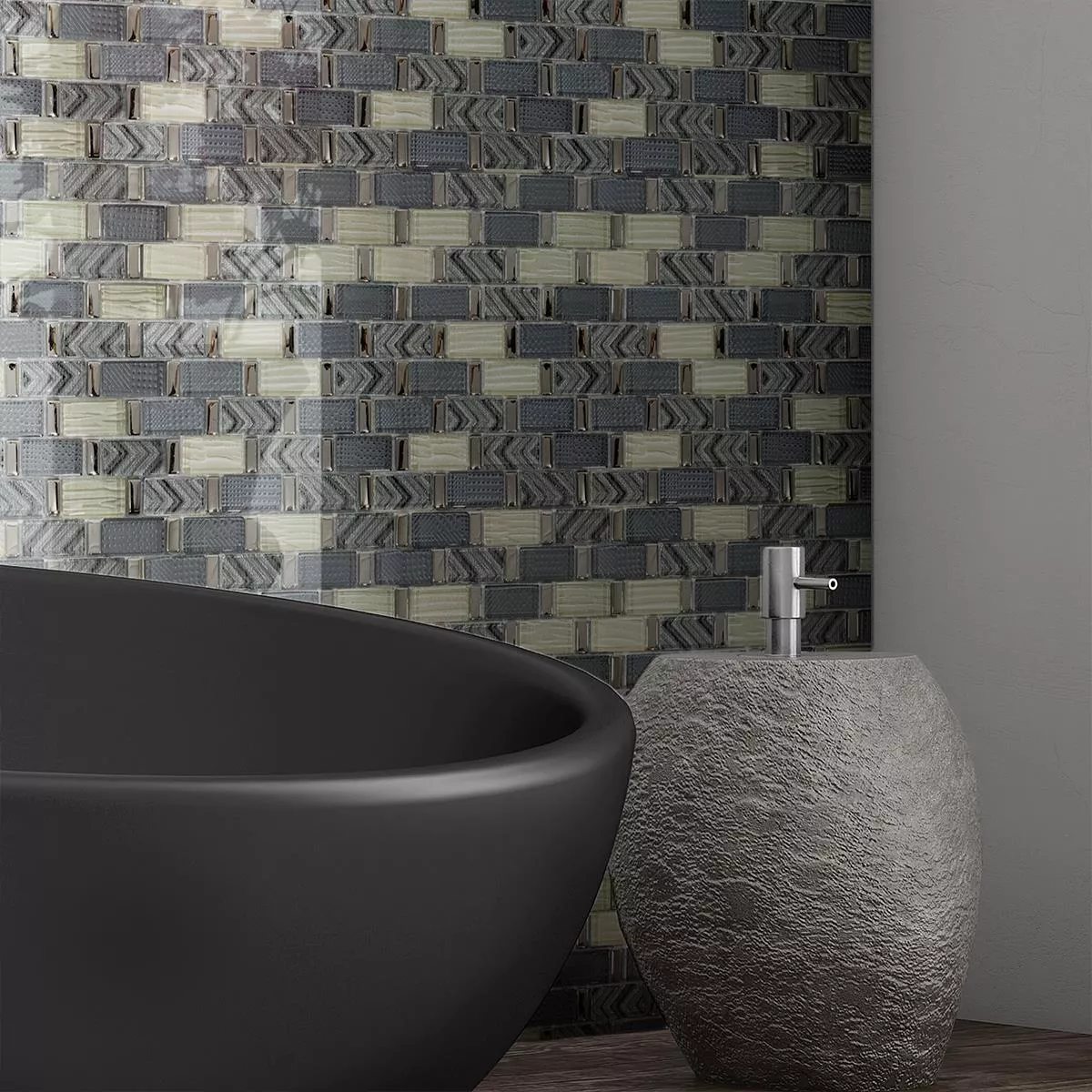 Muster von Glasmosaik Fliesen Buenos Aires Grau Beige Mix