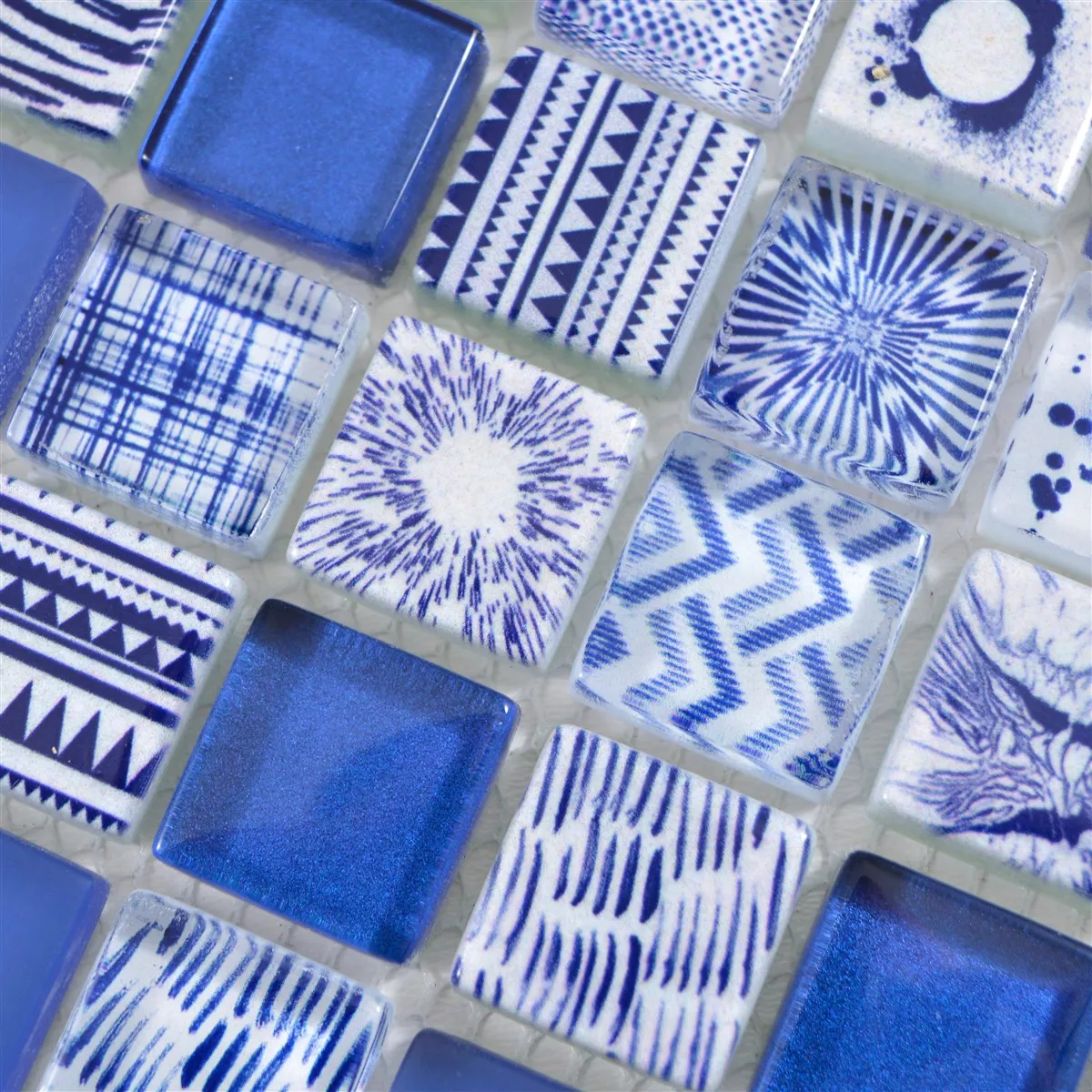 Muster von Glasmosaik Fliesen Cornelia Retrooptik Blau