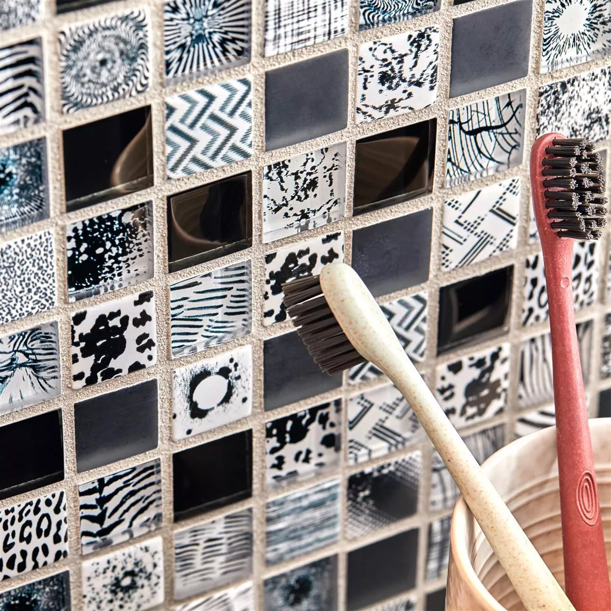 Muster von Glasmosaik Fliesen Cornelia Retrooptik Schwarz