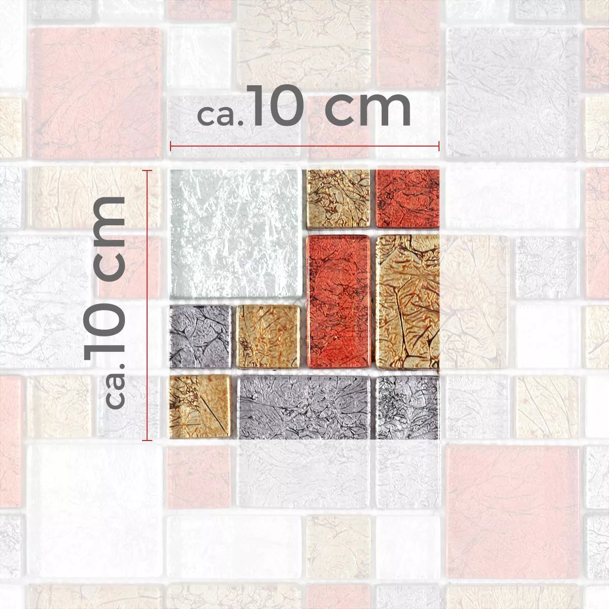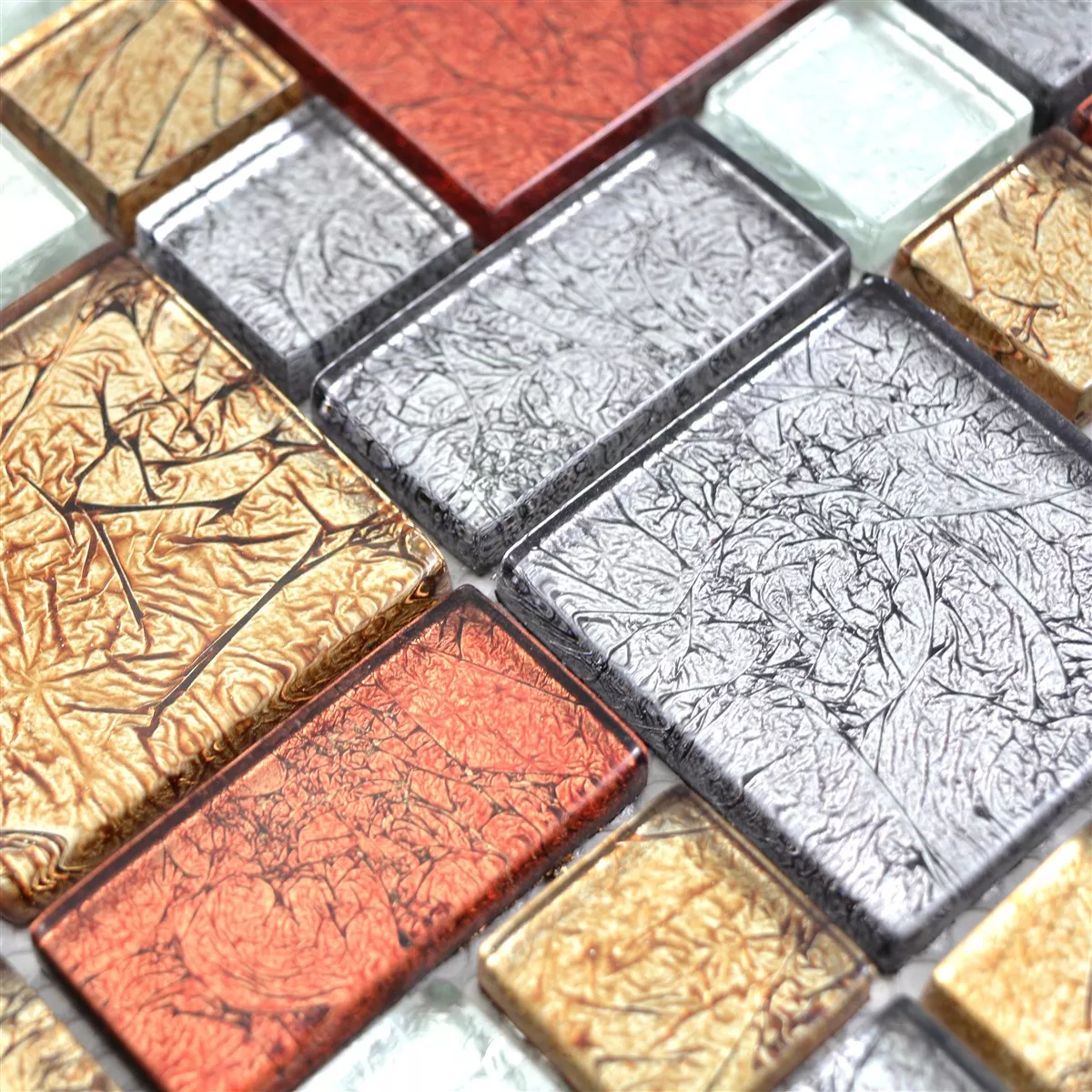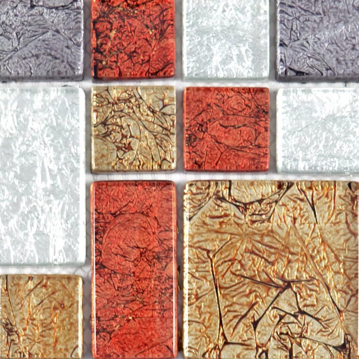 Muster von Glasmosaik Fliesen Curlew Rot Braun Silber Mix