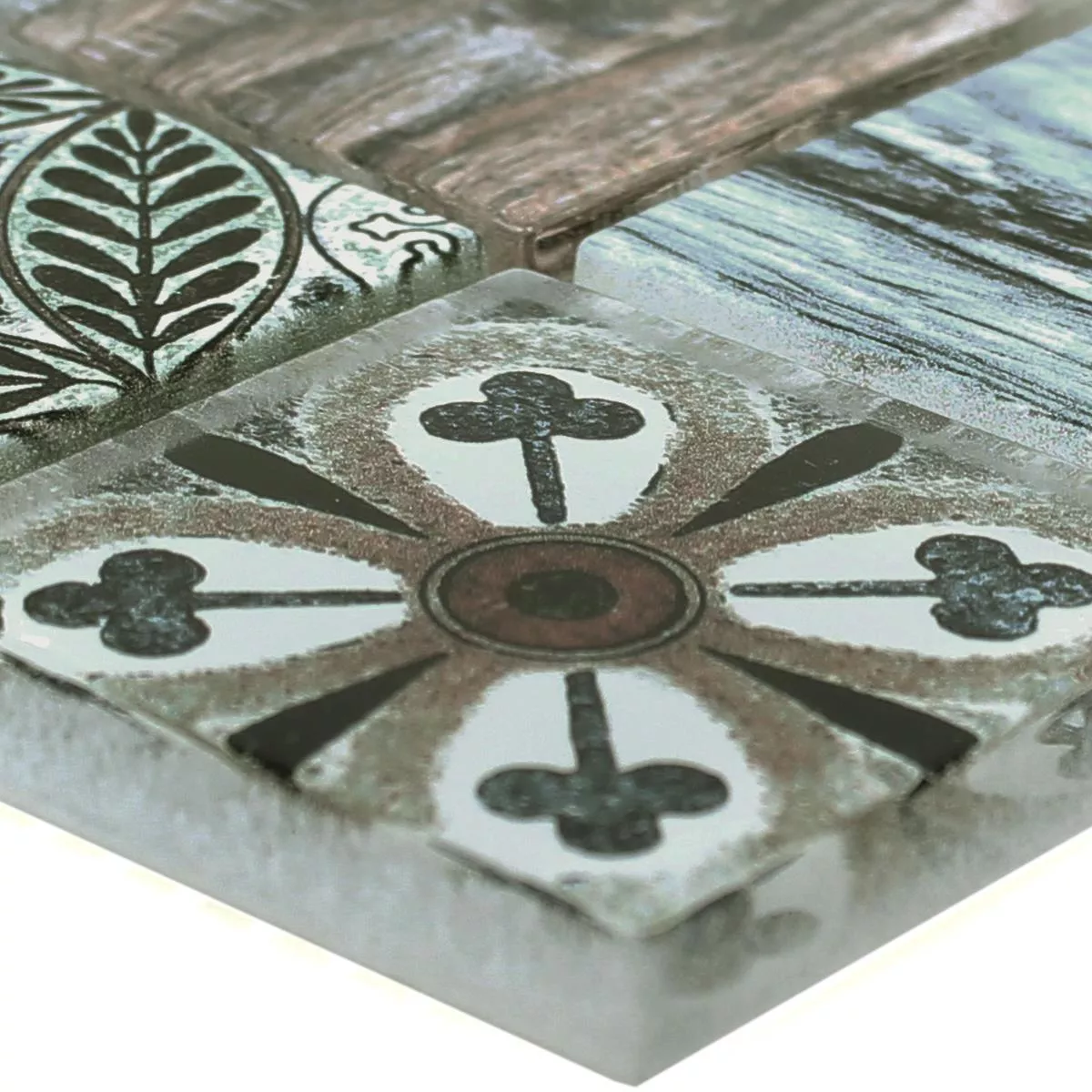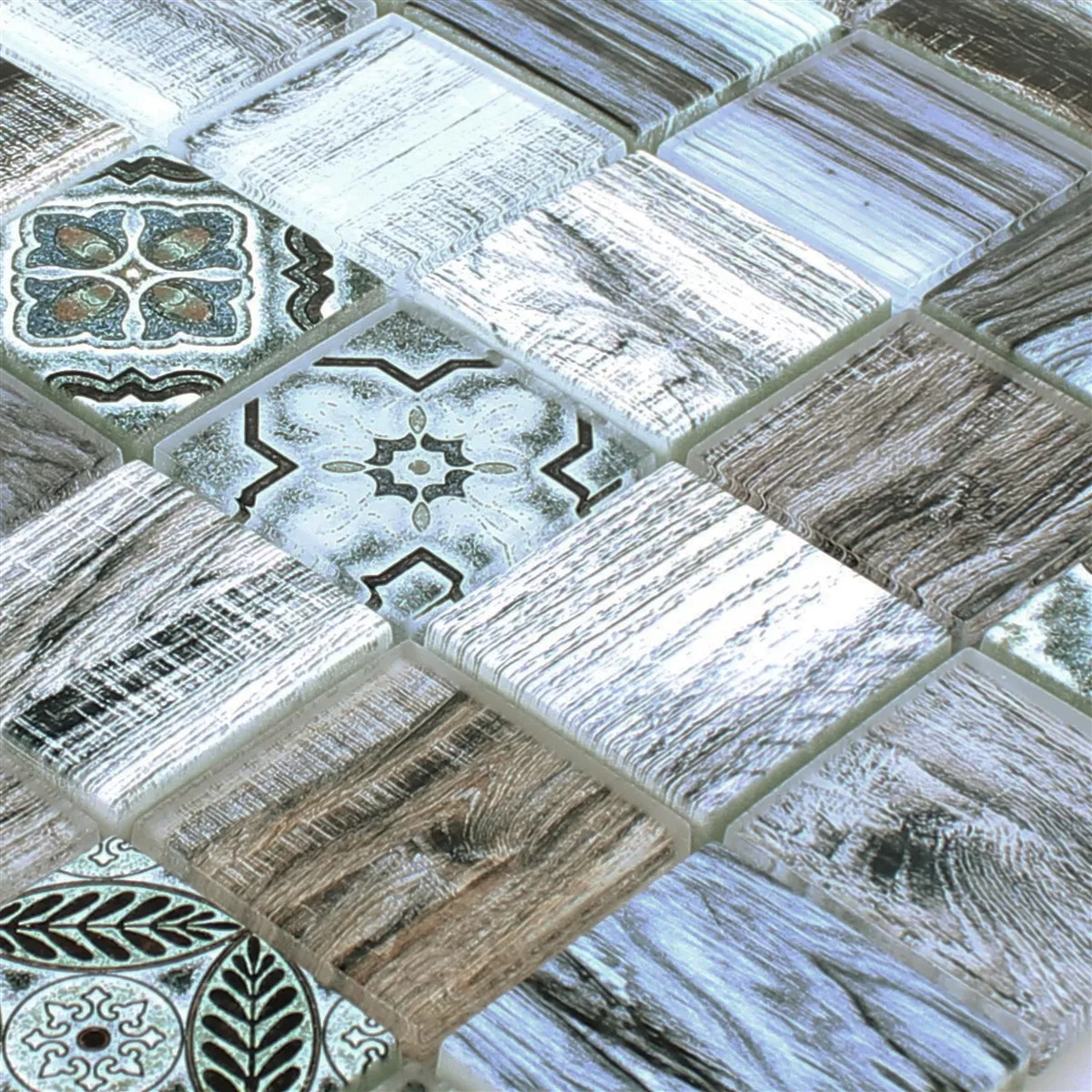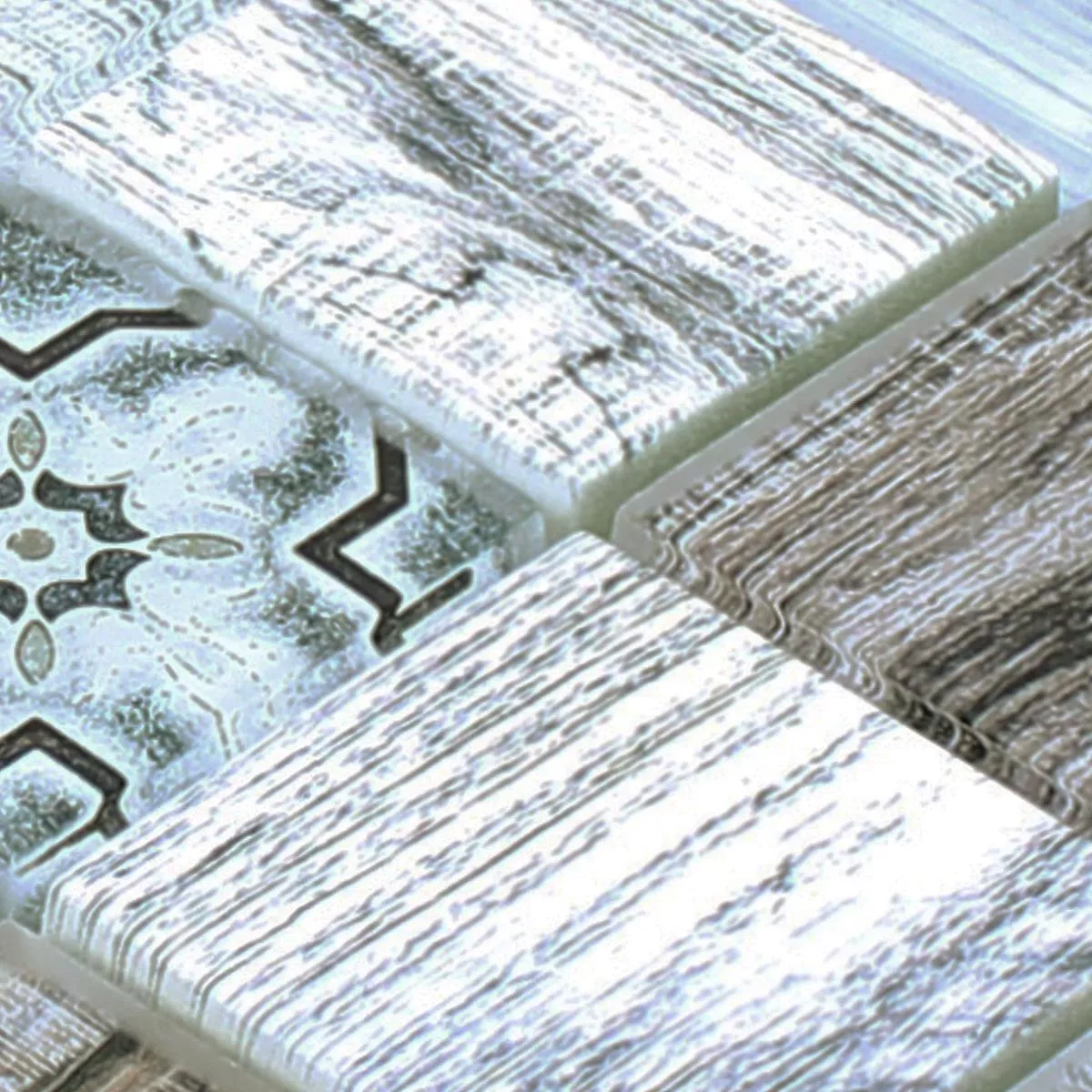 Muster von Glasmosaik Fliesen Holzoptik Makarska Blau