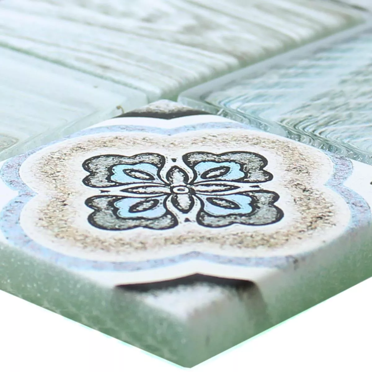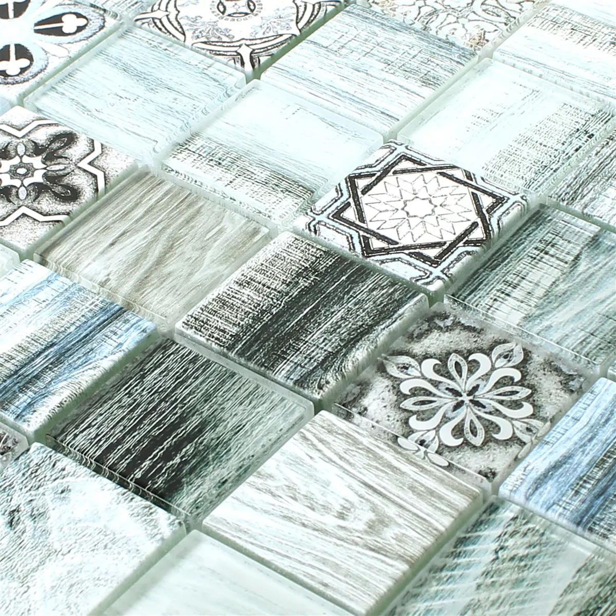 Muster von Glasmosaik Fliesen Holzoptik Makarska Hellblau