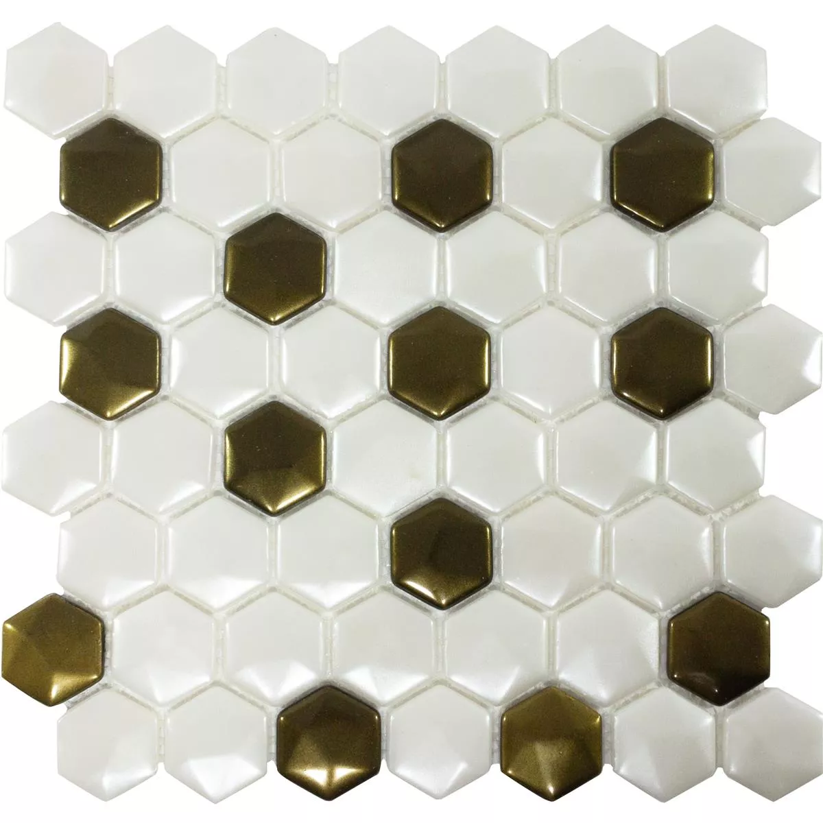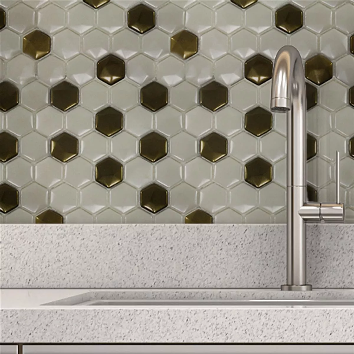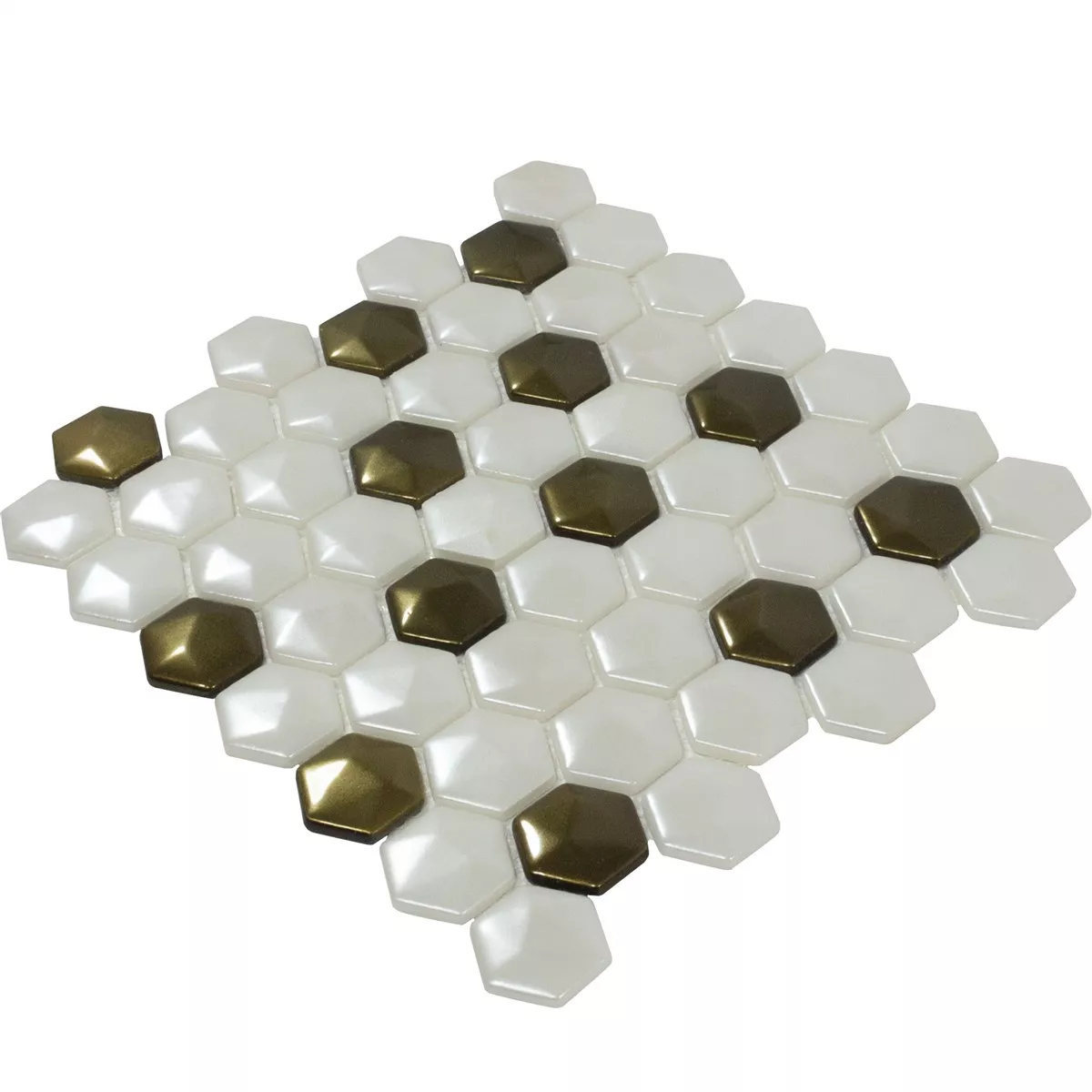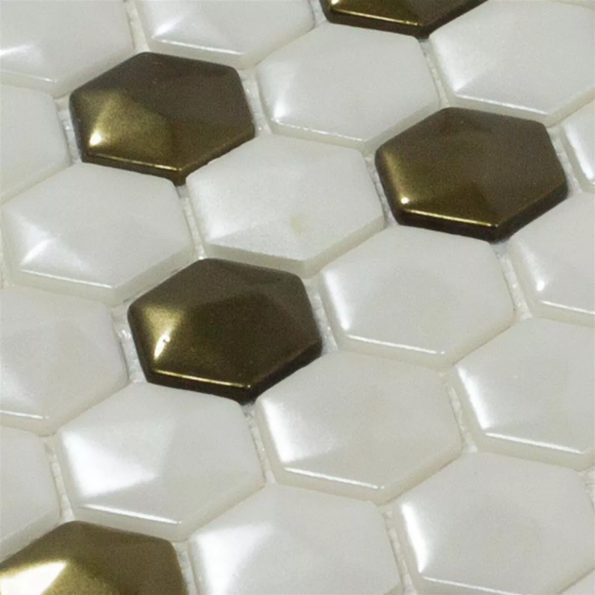Muster von Glasmosaik Fliesen Las Vegas Hexagon 3D Weiß Gold