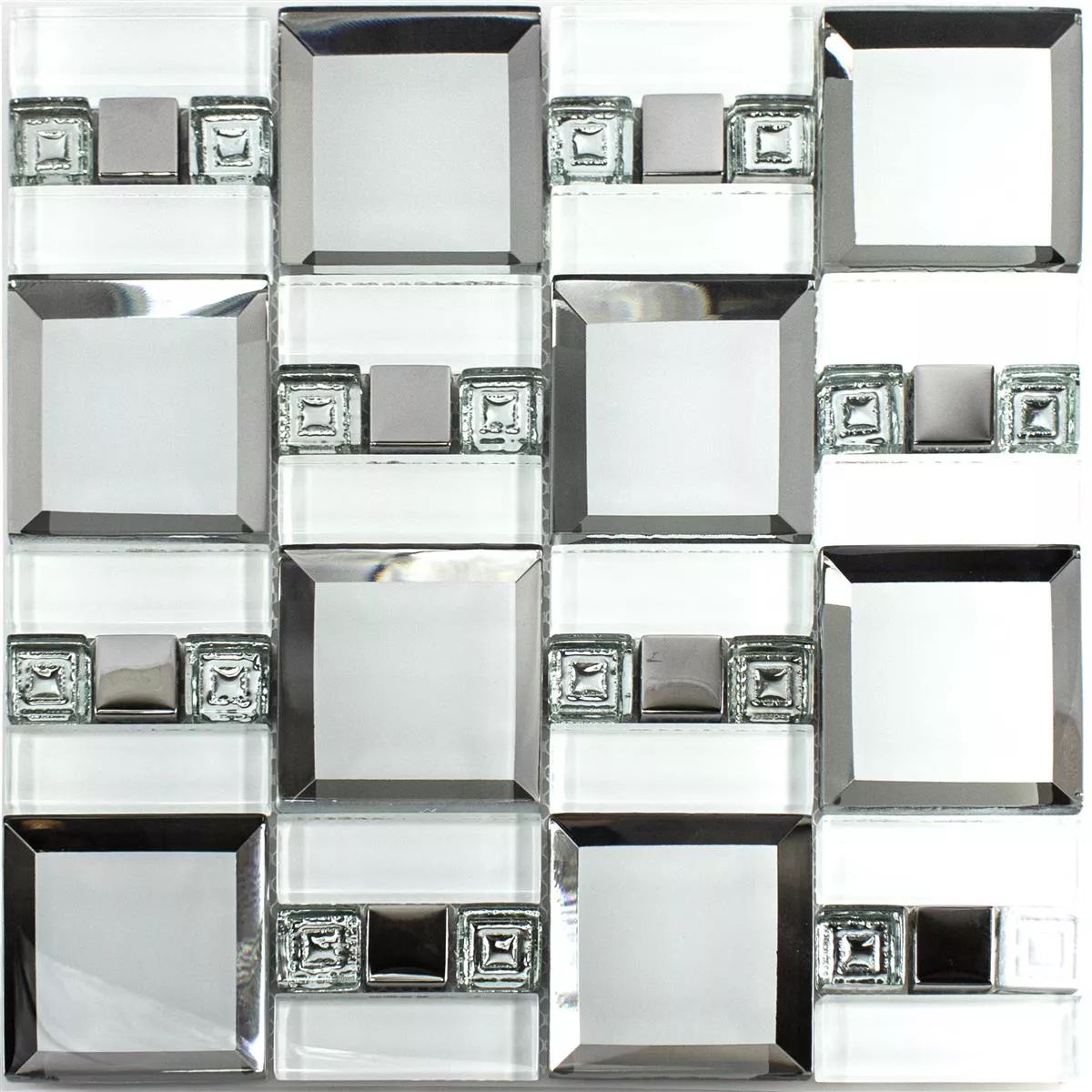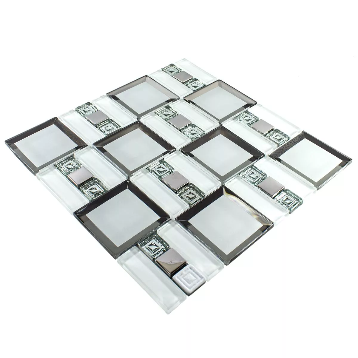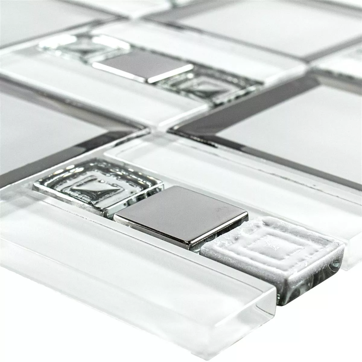 Muster von Glasmosaik Fliesen Magical Weiß Silber