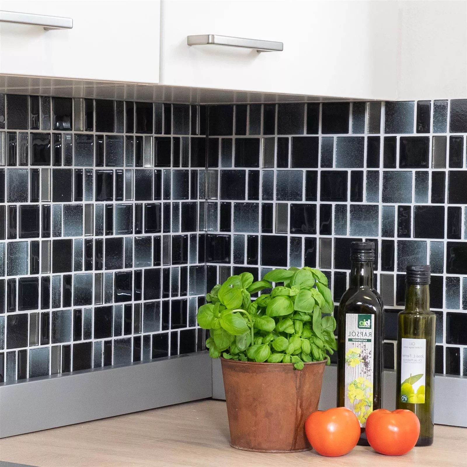 Muster von Glasmosaik Fliesen Peacock Schwarz Schillernd