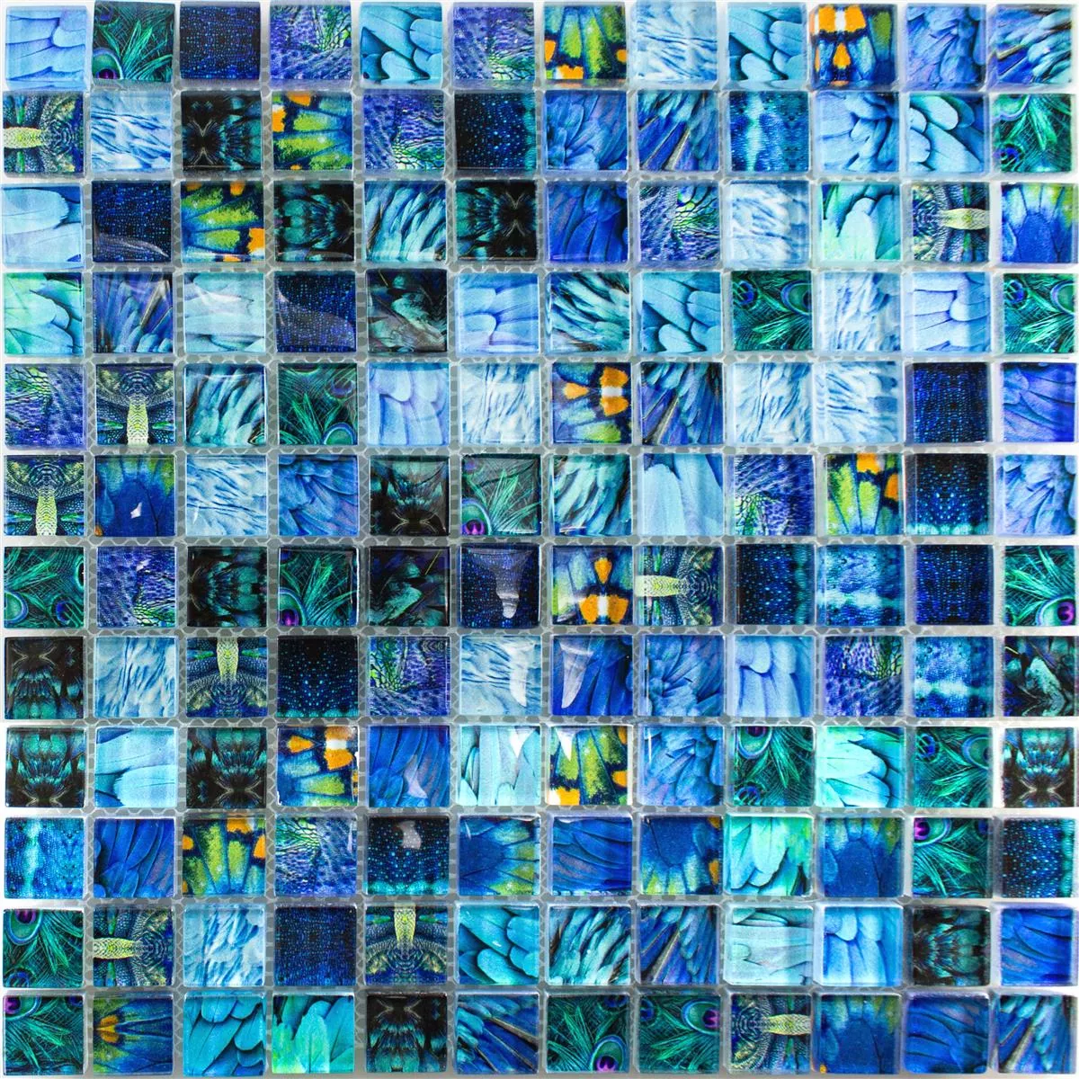 Unsere Glas Mosaikfliesen aus der Peafowl-Reihe sind eine elegante Wahl für jeden Raum in Ihrem Zuhause. Diese quadratischen Fliesen sind wasserfest und glänzend, was sie ideal für feuchte Bereiche wie das Badezimmer, den Waschraum oder die Küche macht.