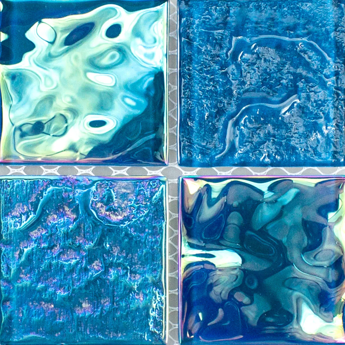 Muster von Glasmosaik Fliesen Perlmutt Effekt Carlos Blau 48