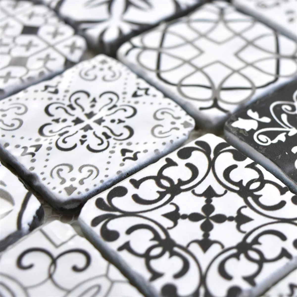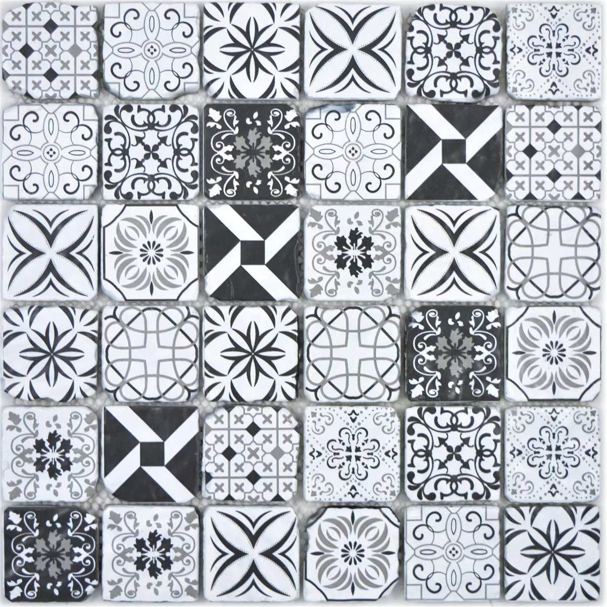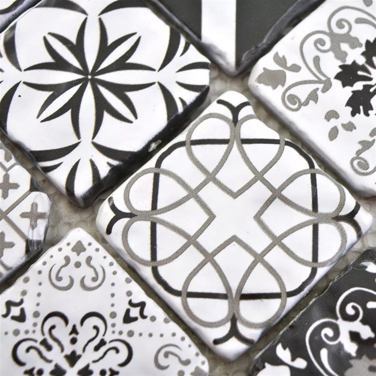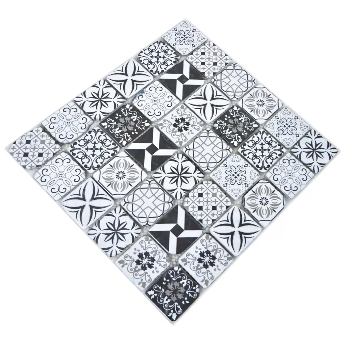 Muster von Glasmosaik Fliesen Starlite Retro Schwarz Weiß 48
