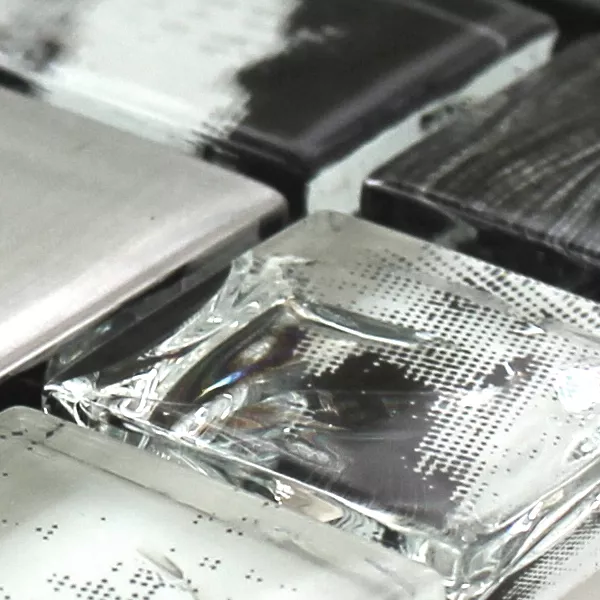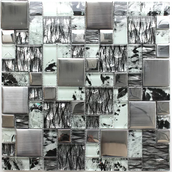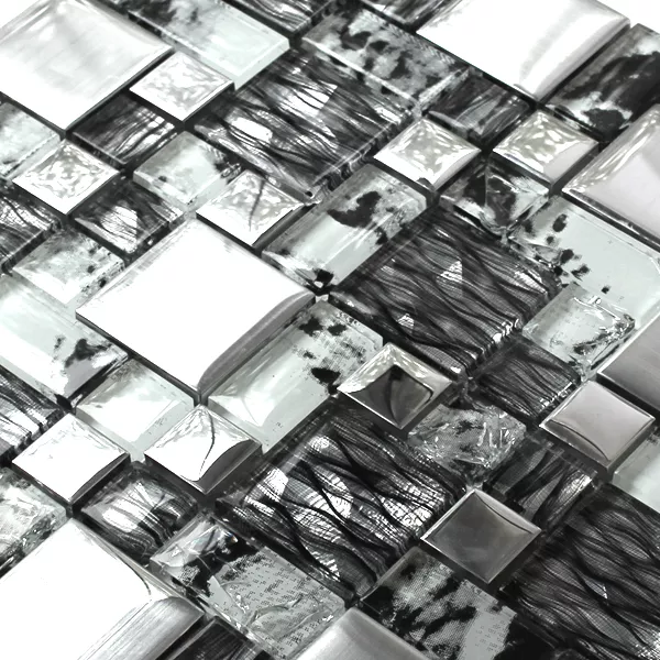 Muster von Glasmosaik Fliesen Zebra Anthrazit Silber