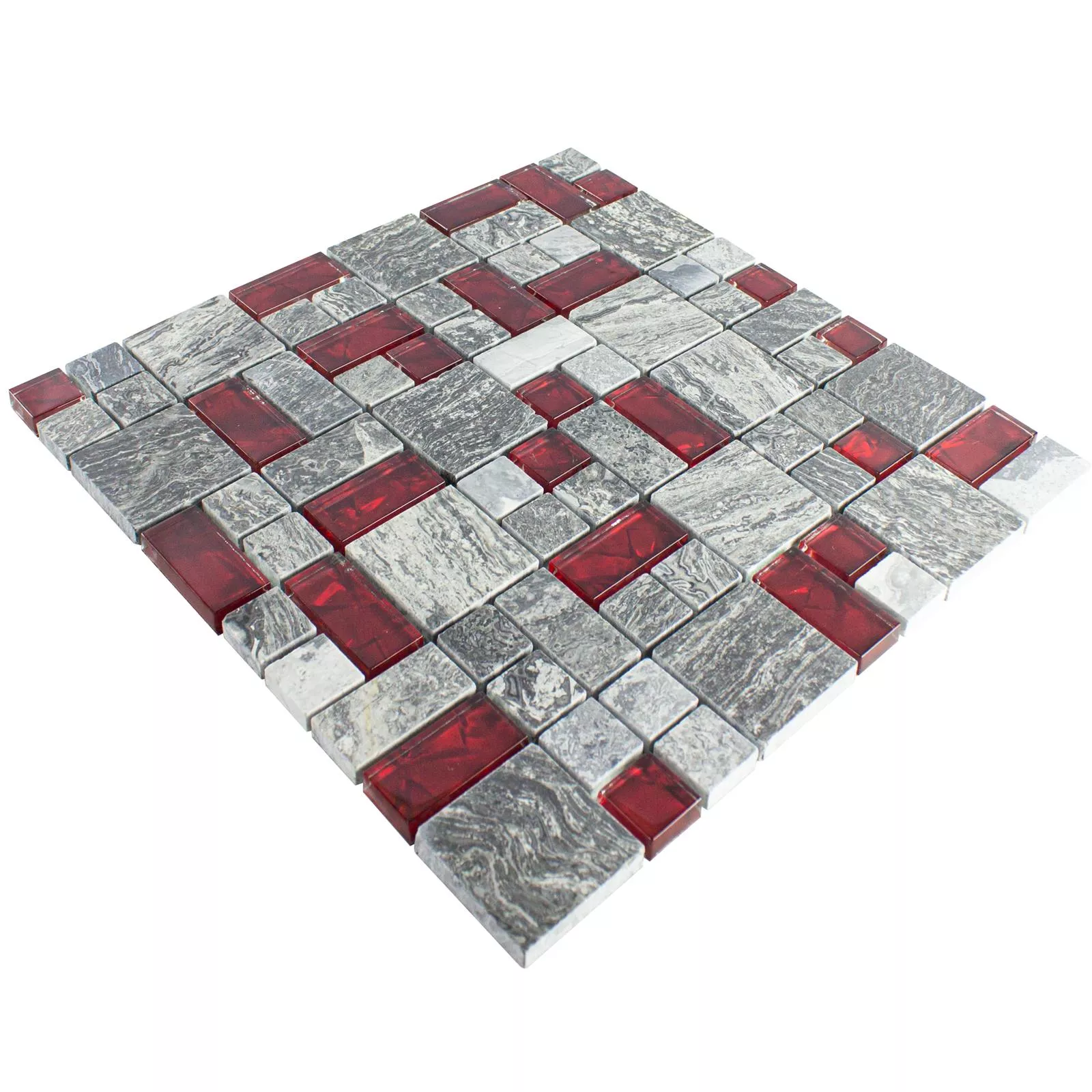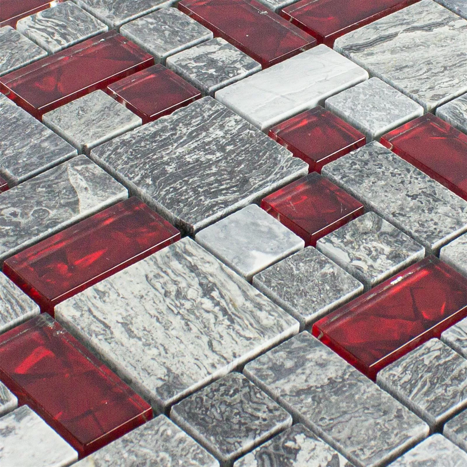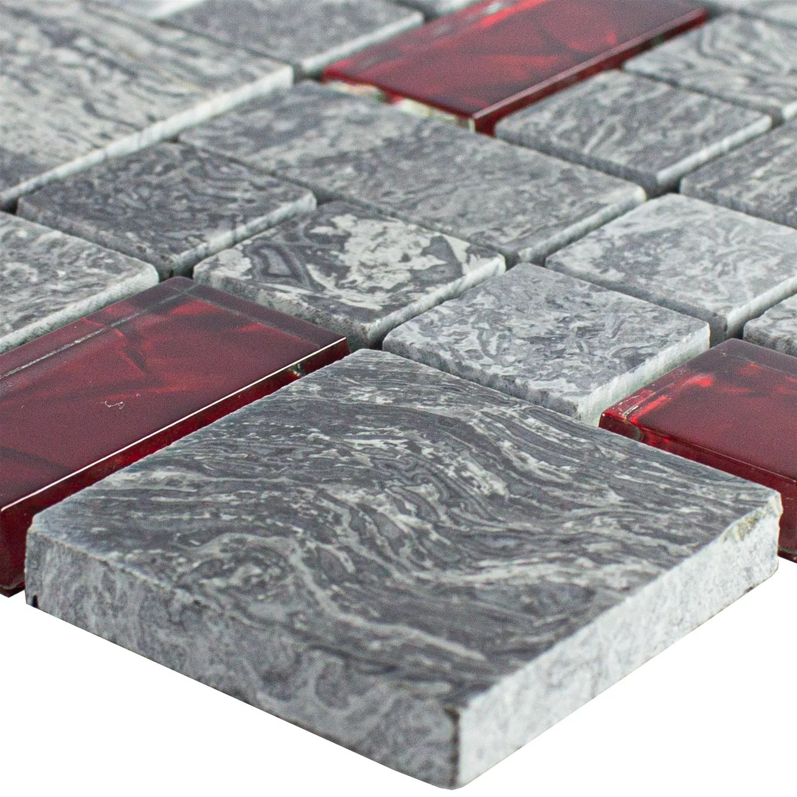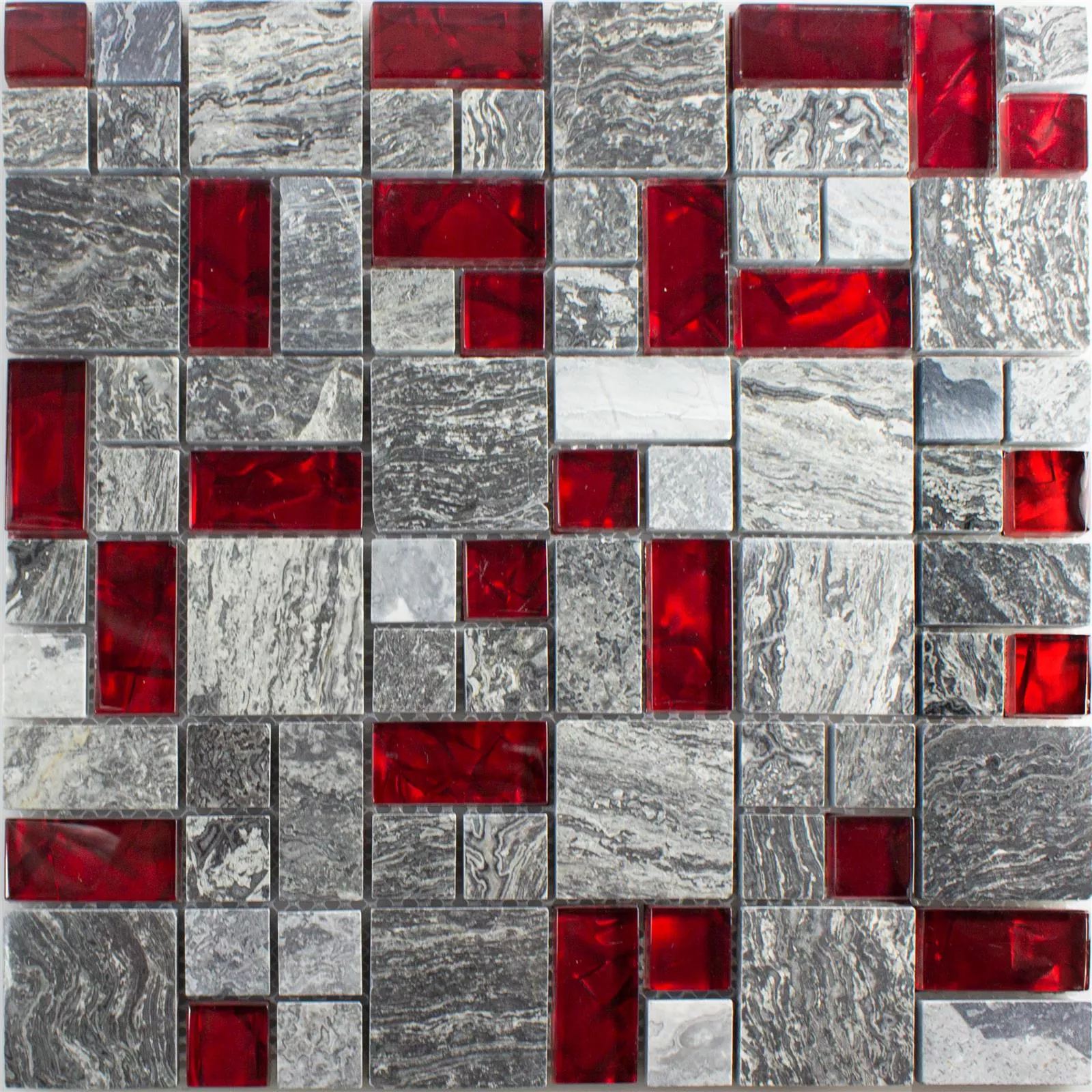 Muster Glasmosaik Natursteinfliesen Manavgat Grau Rot 2 Mix