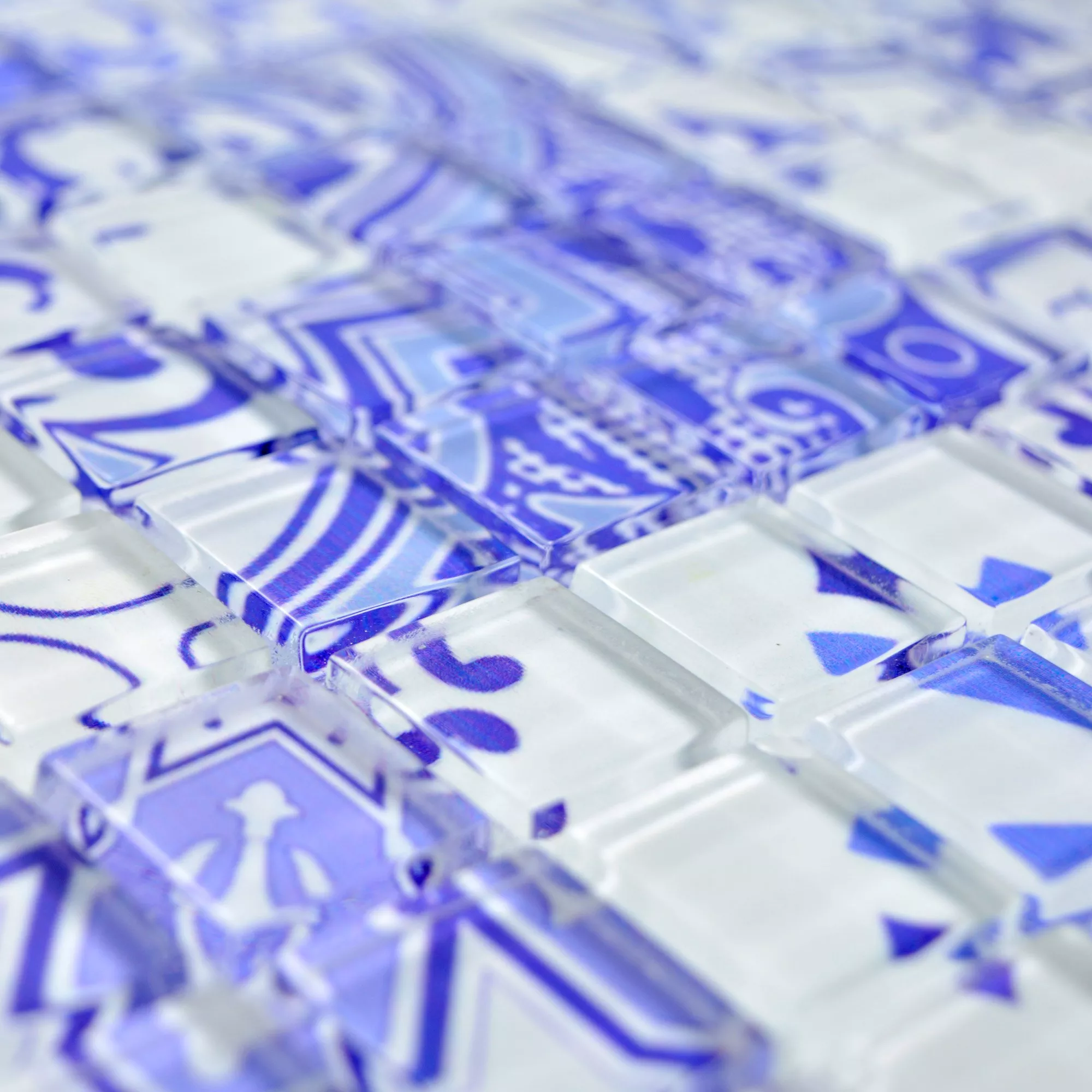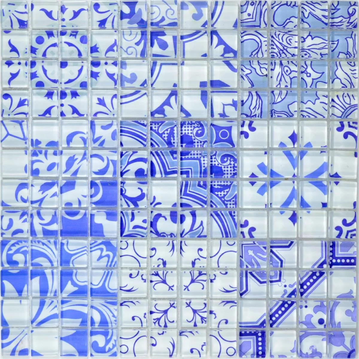 Muster von Glasmosaik Retrofliesen Noya Vintage Blau