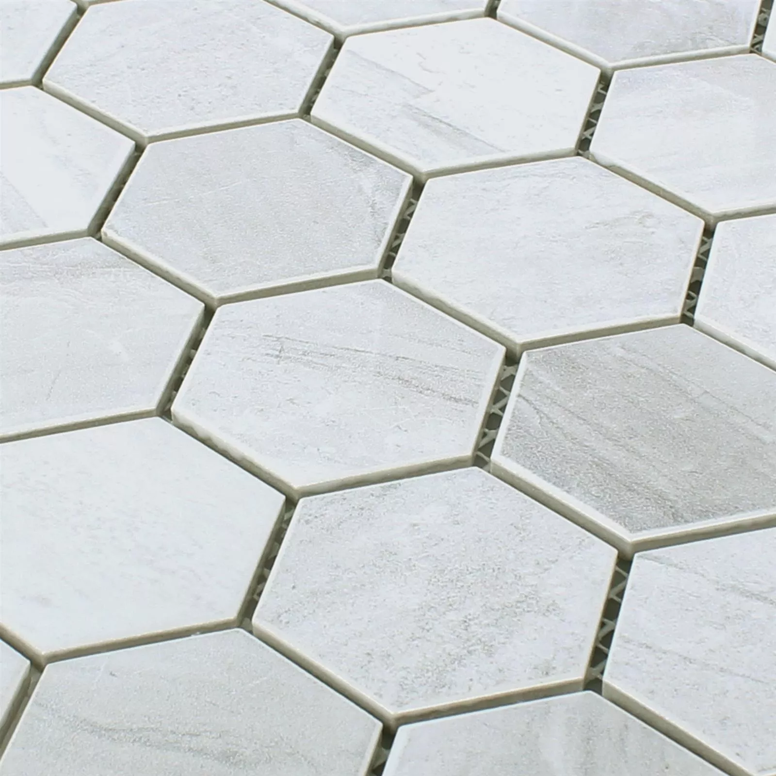 Muster von Keramik Betonoptik Mosaikfliesen Shepherd Hexagon Grau