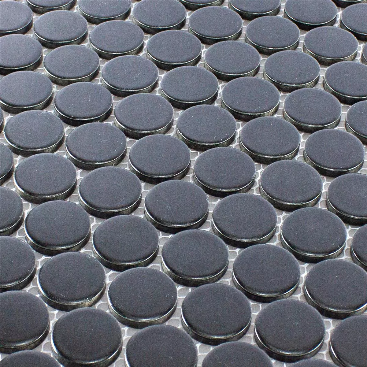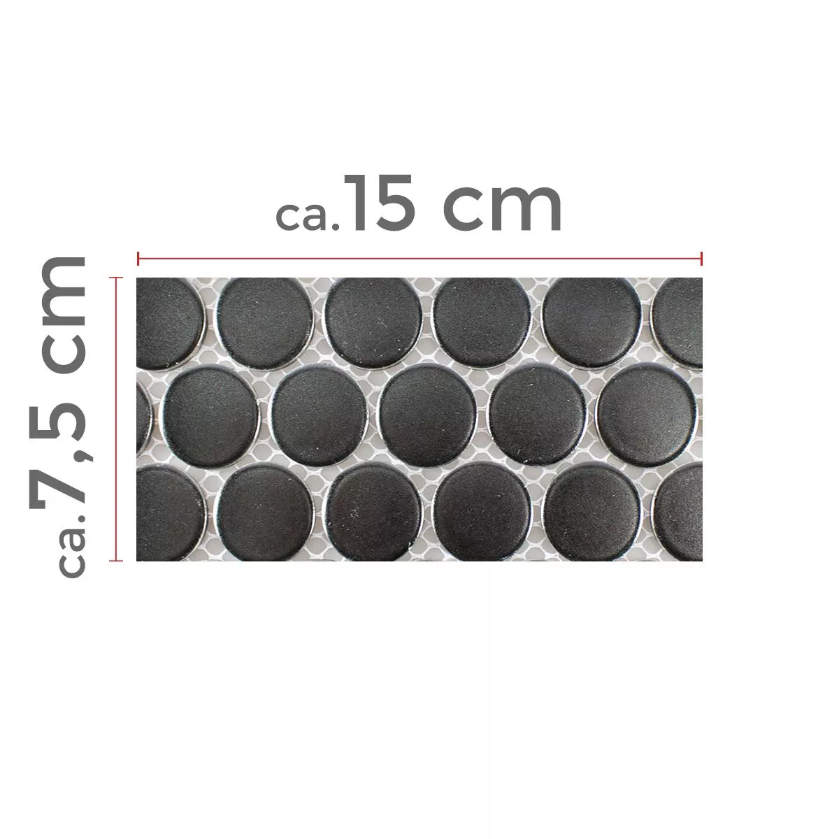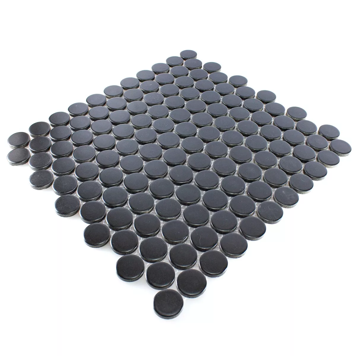 Muster von Keramik Knopf Mosaik Fliesen Harlingen Schwarz Matt