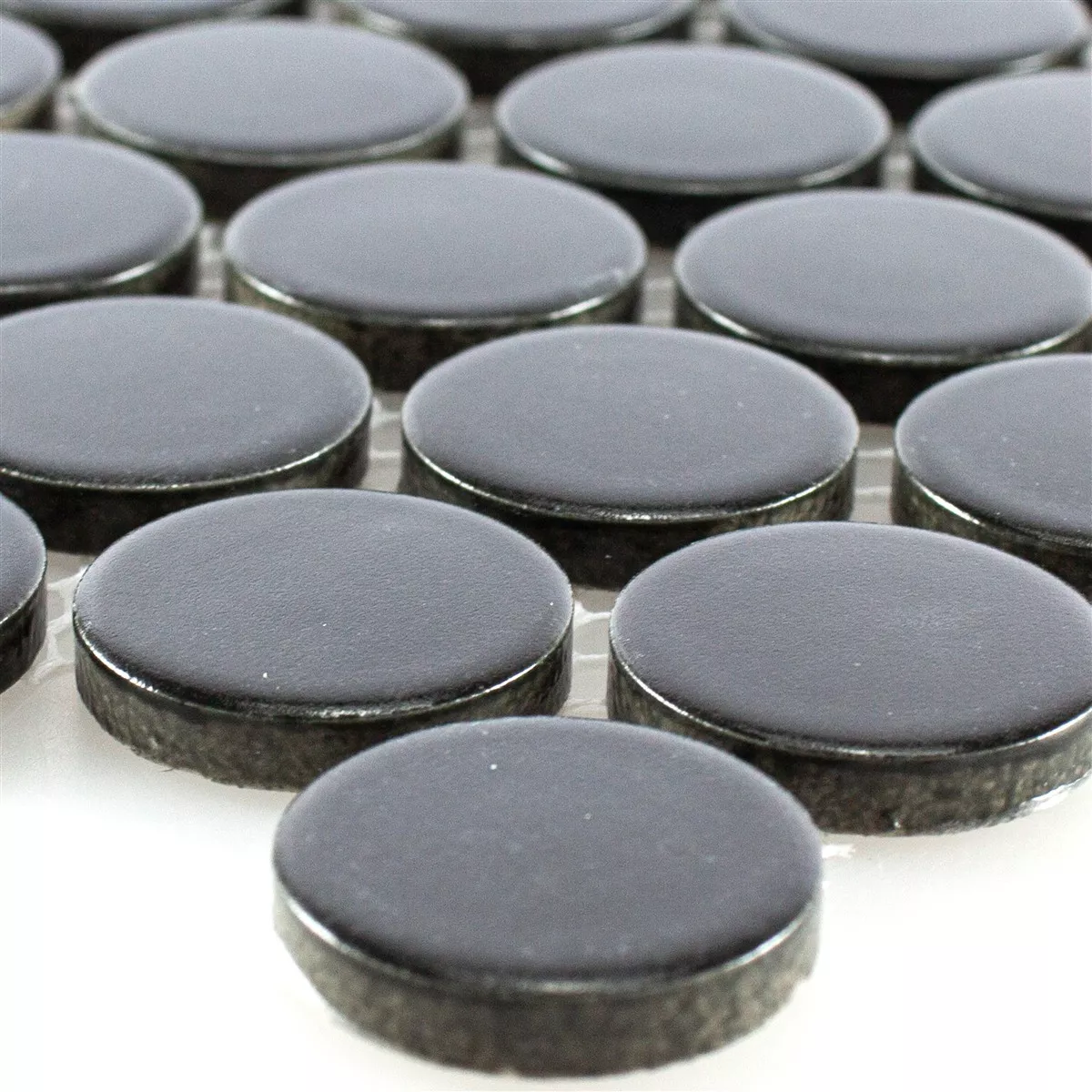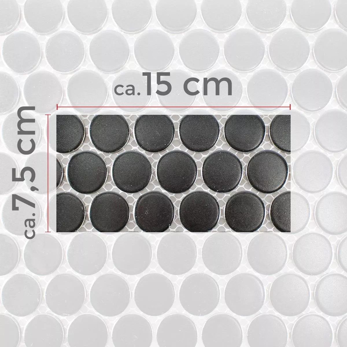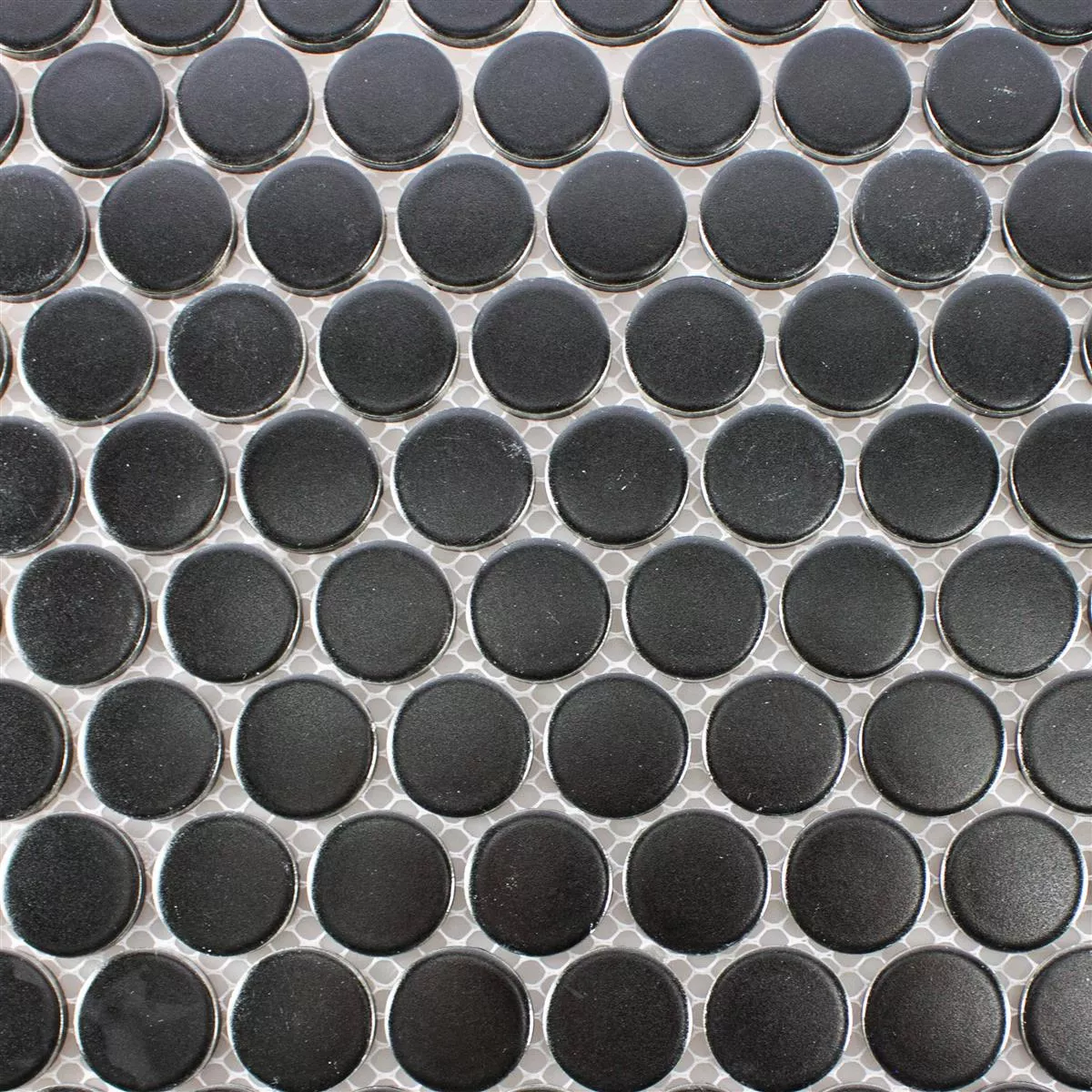 Muster von Keramik Knopf Mosaik Fliesen Harlingen Schwarz Matt