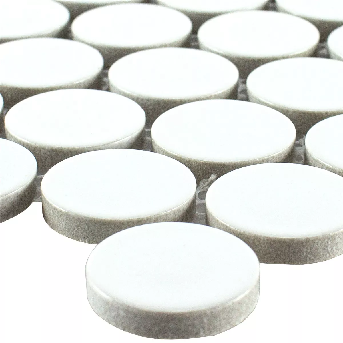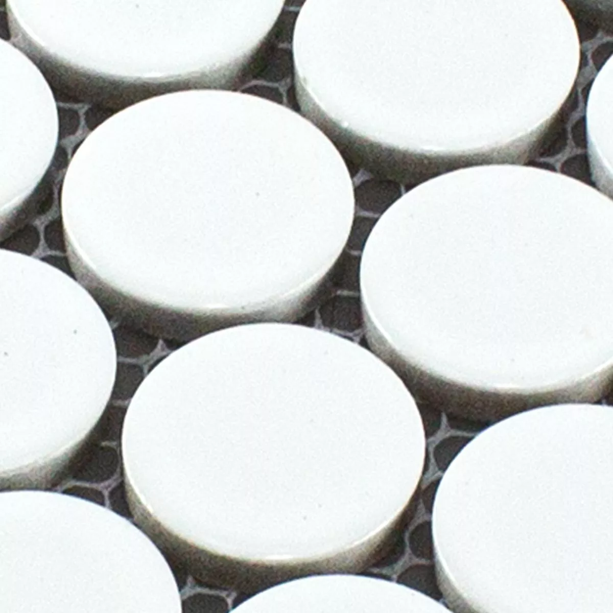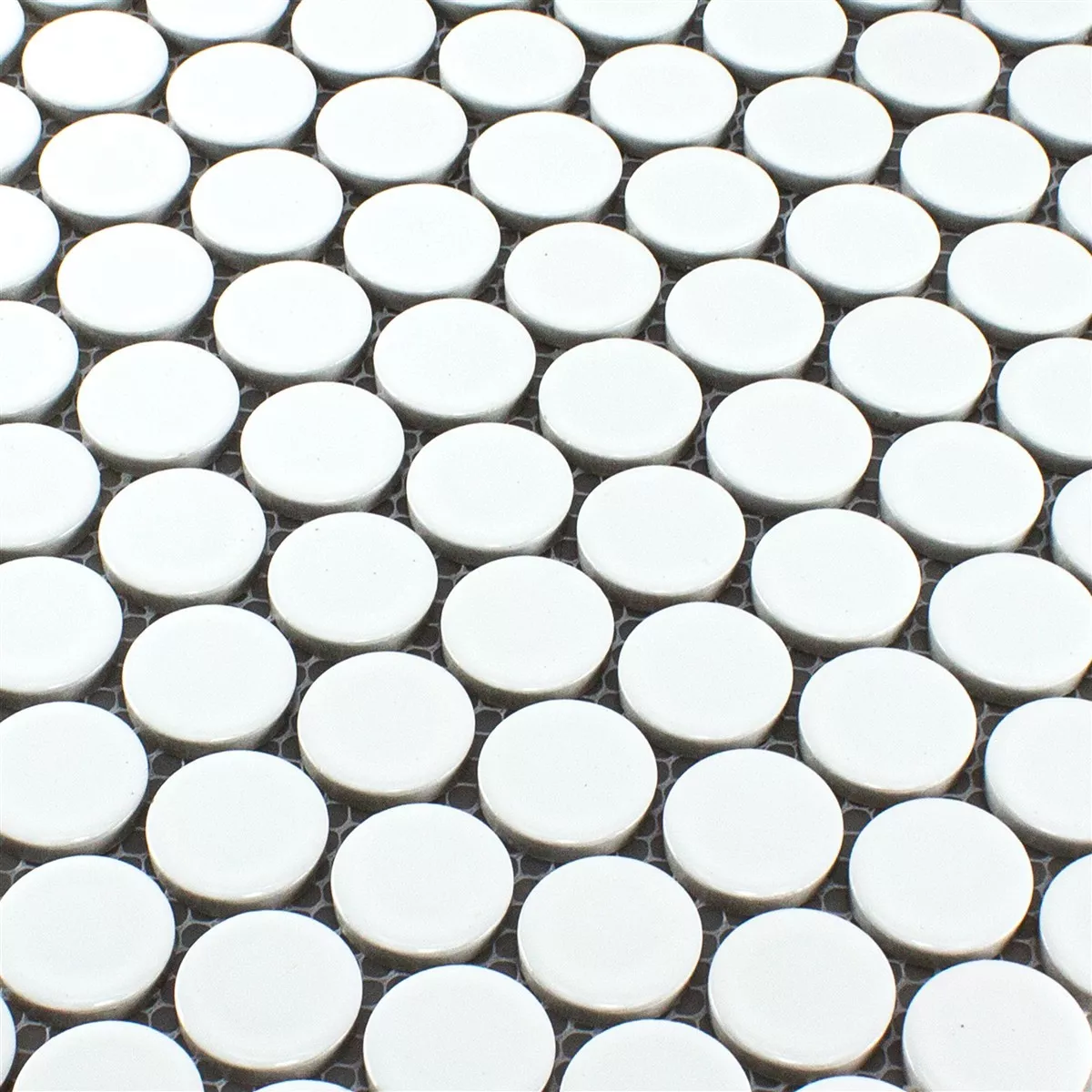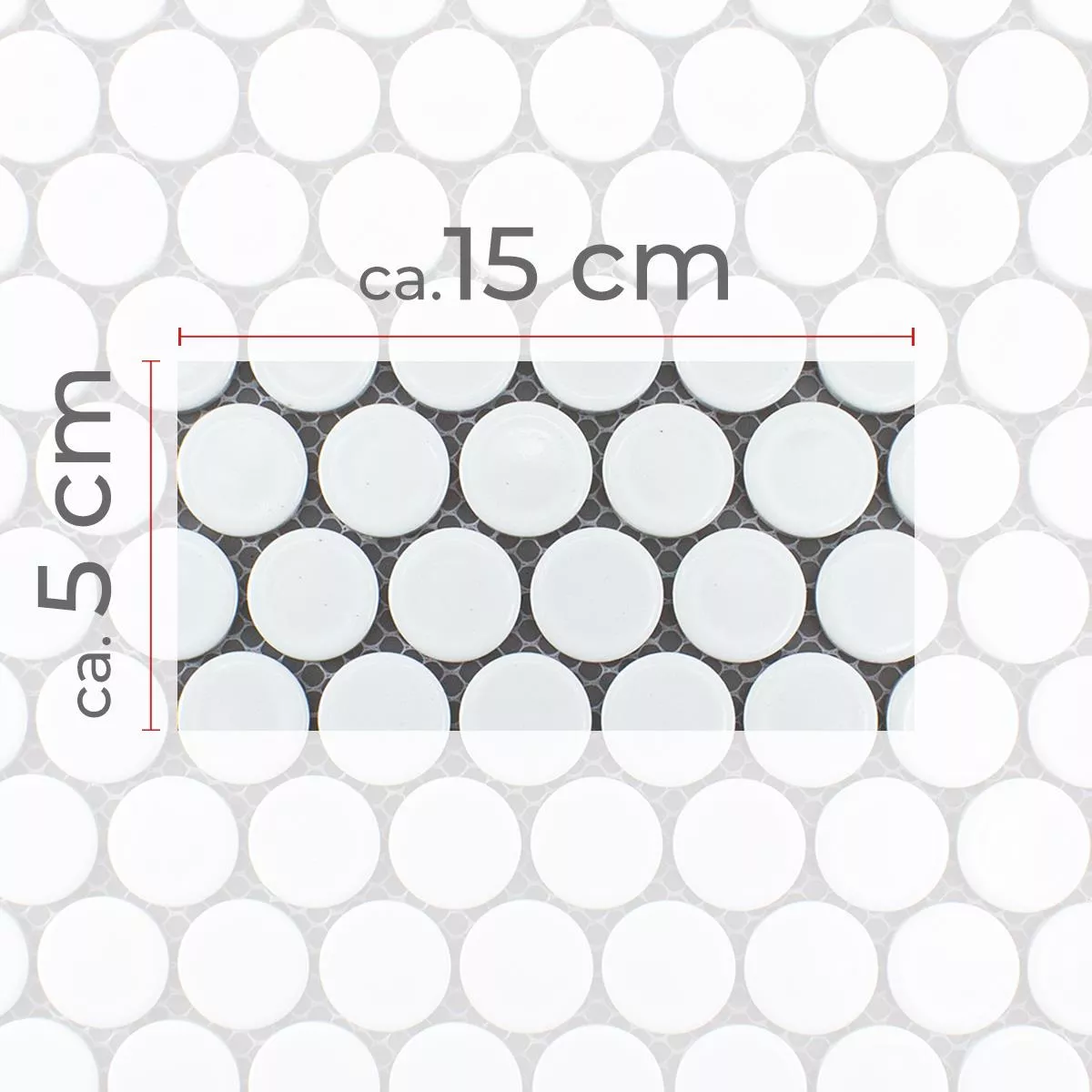 Muster von Keramik Knopf Mosaik Fliesen LaRosita Weiß Glänzend