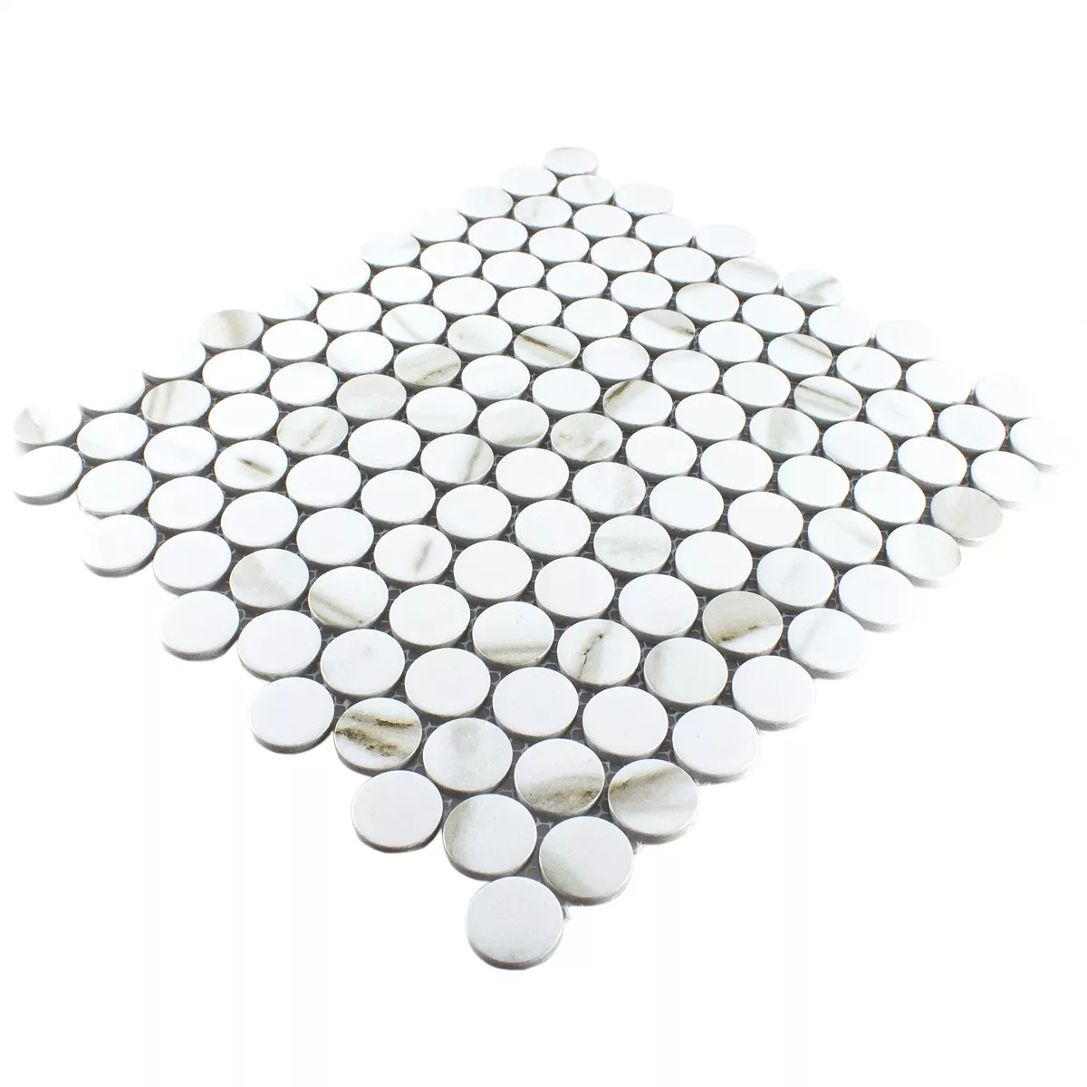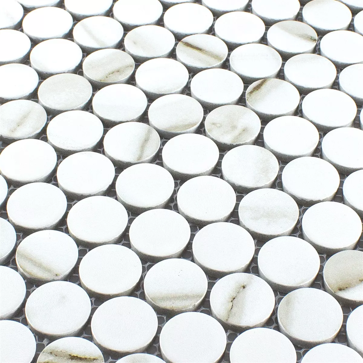 Muster von Keramik Knopf Rund Mosaikfliesen Hunter Calacatta