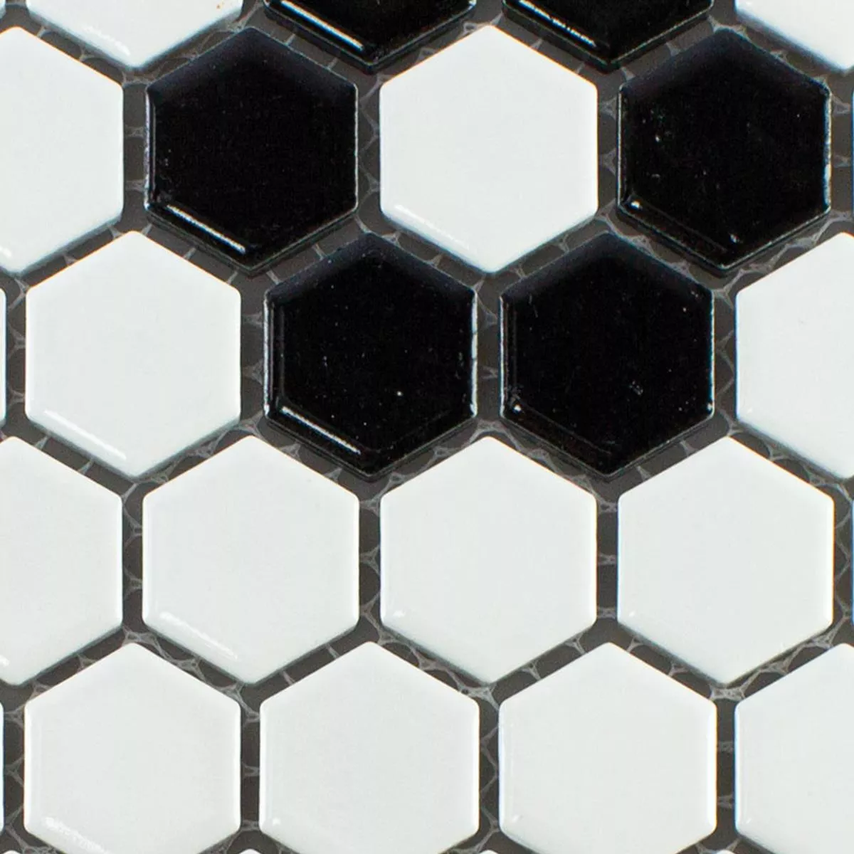 Muster von Keramik Mosaikfliese Carlsbad Blume Schwarz Weiß