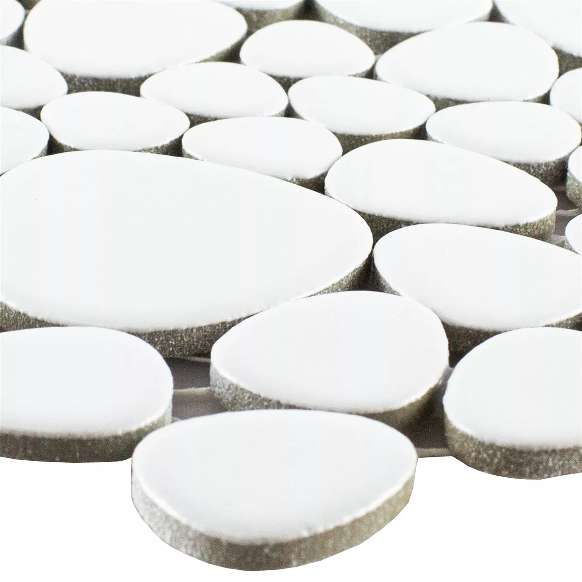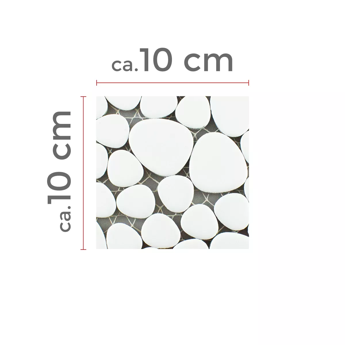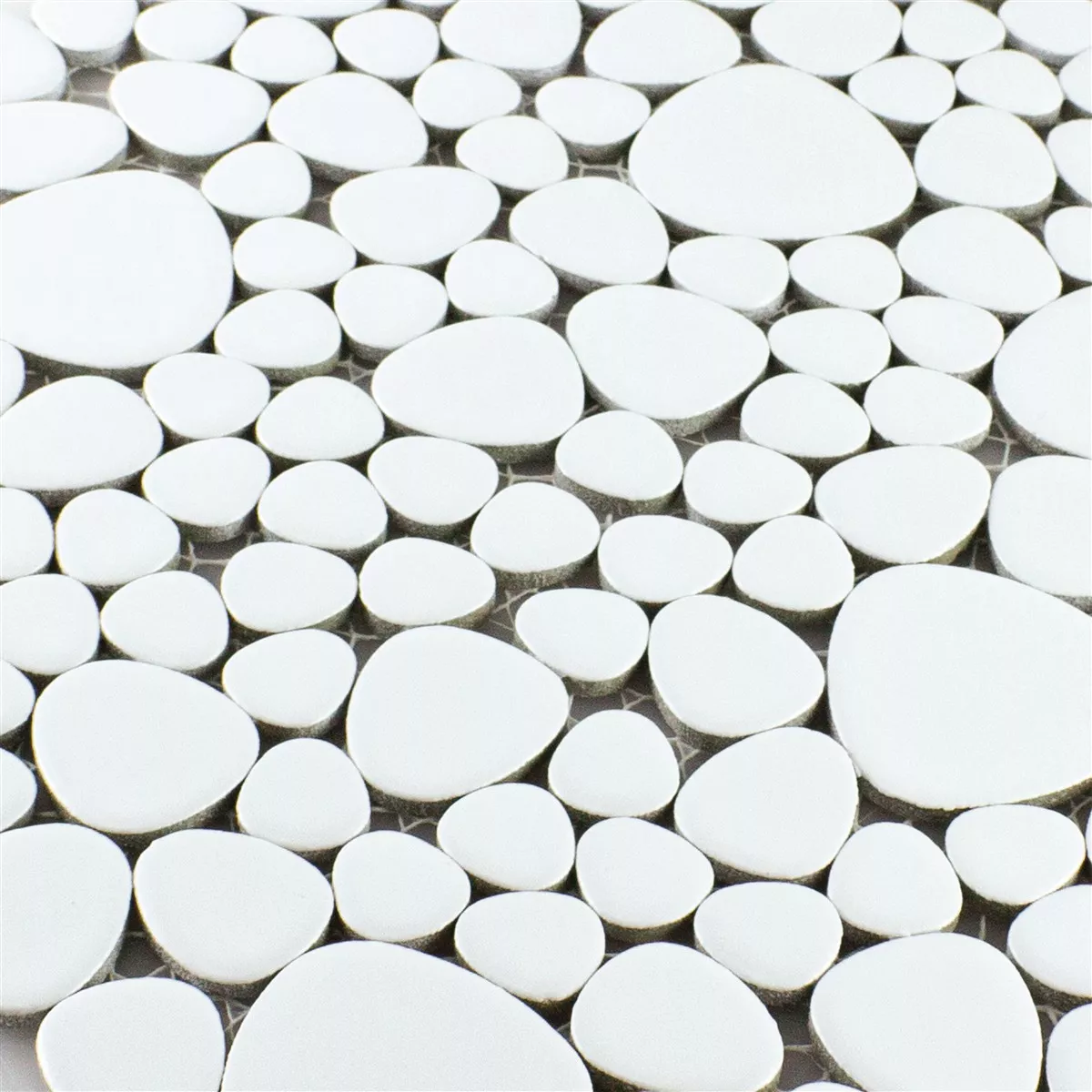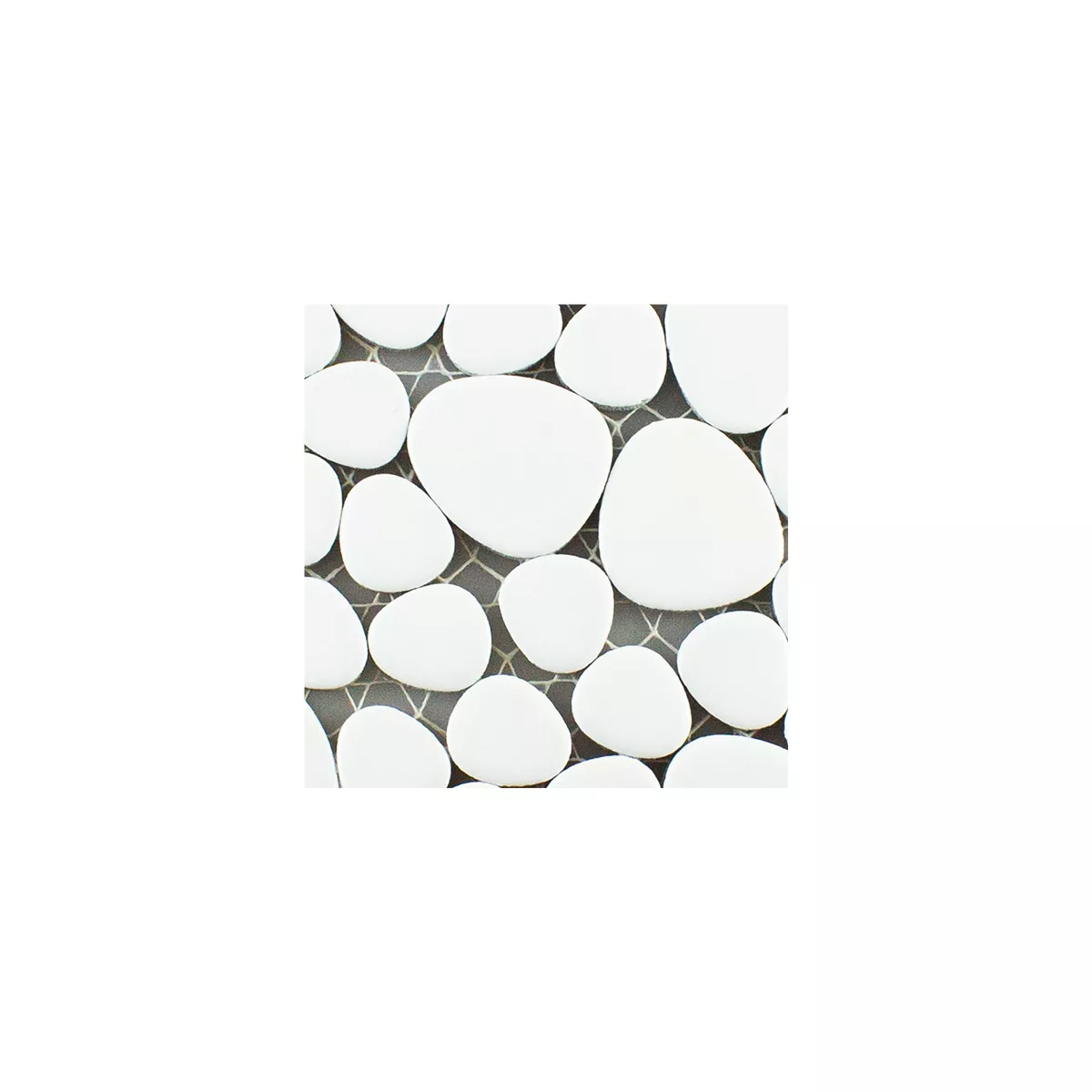 Muster von Keramik Mosaikfliese LaGrande Kiesel Weiß Matt