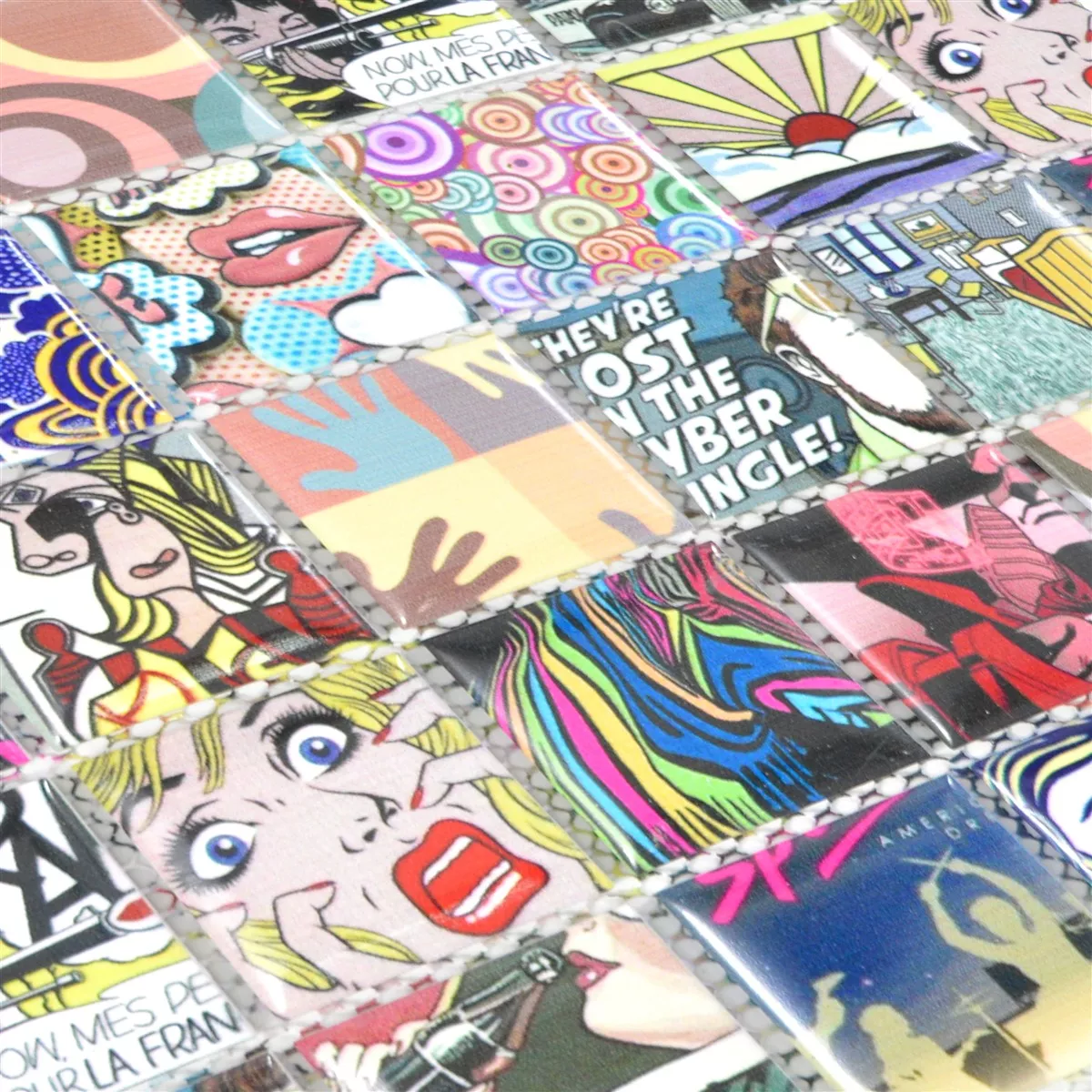 Muster von Keramik Mosaikfliesen Achilles Popartoptik Bunt Duo