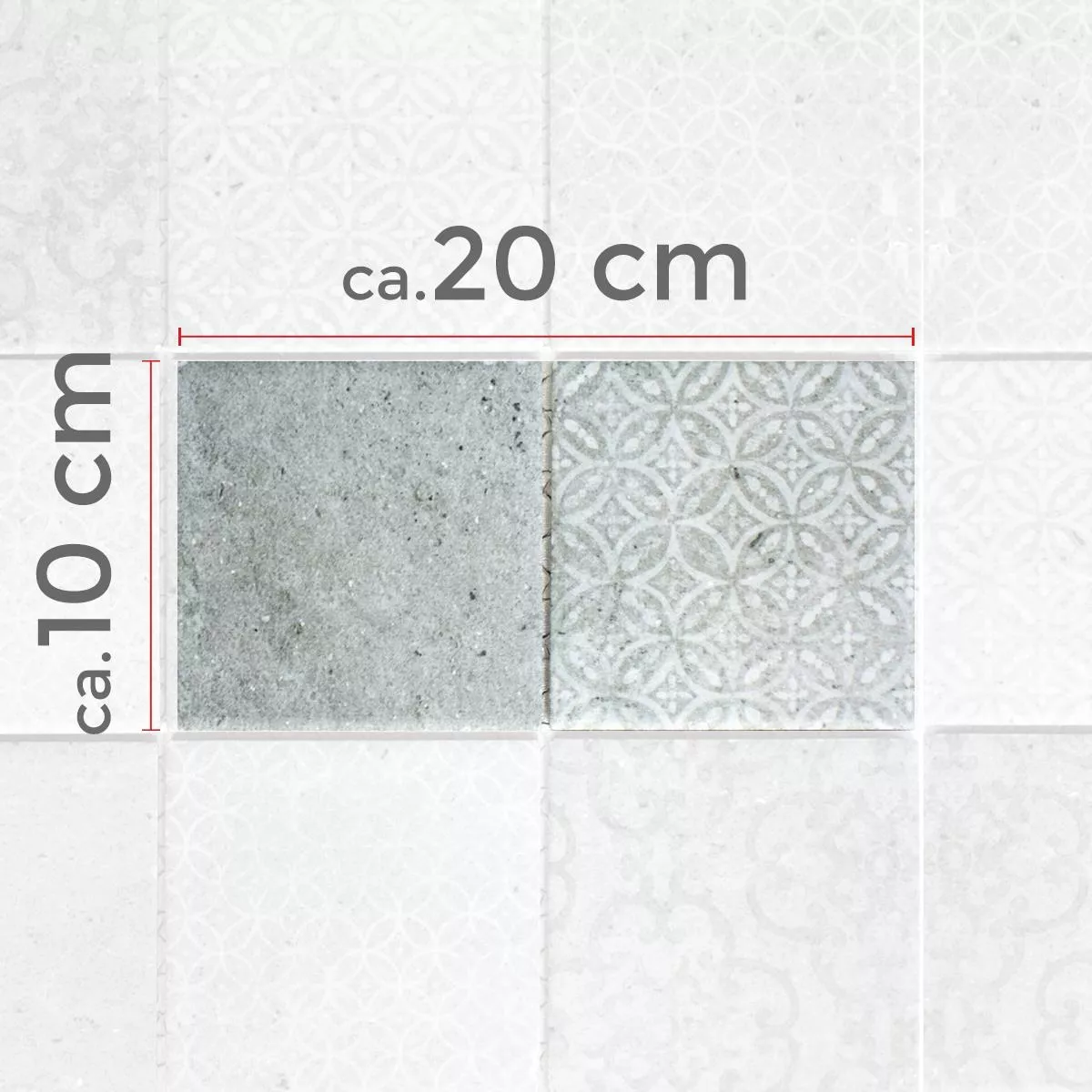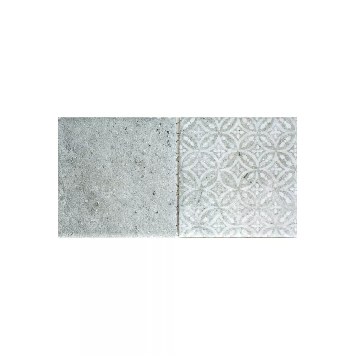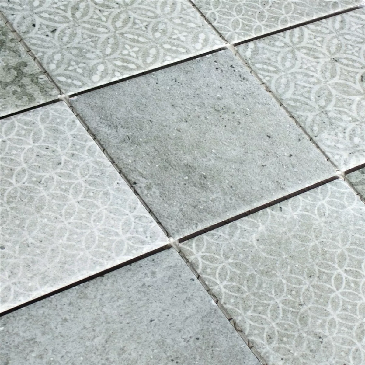 Muster von Keramik Mosaikfliesen Campeche Zementoptik Grau
