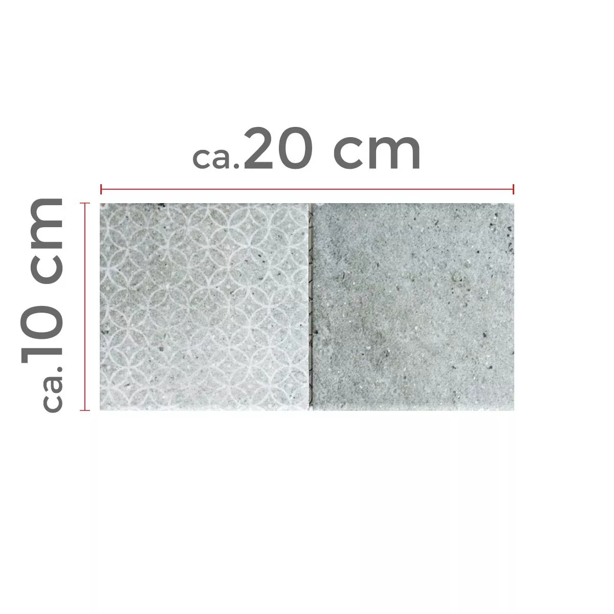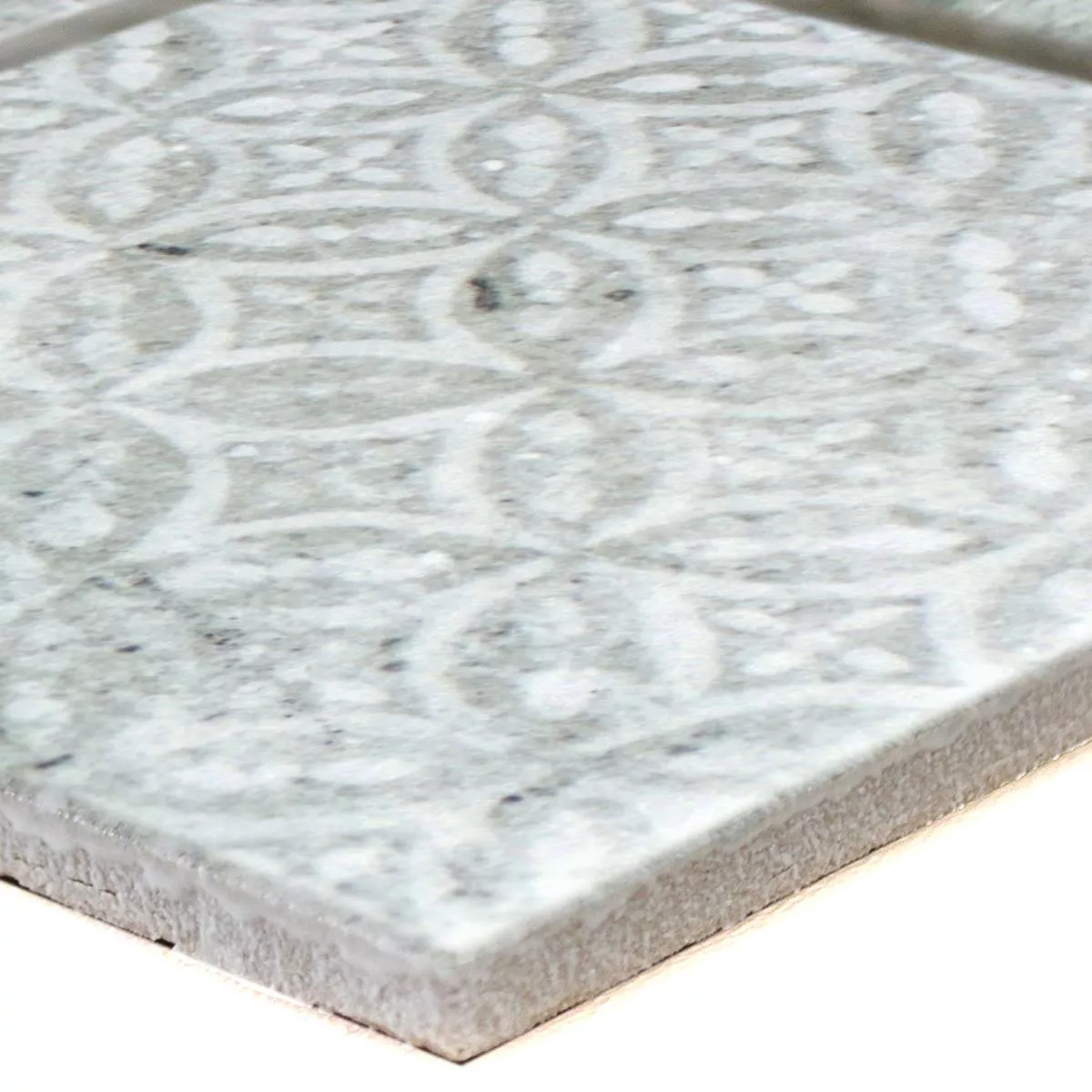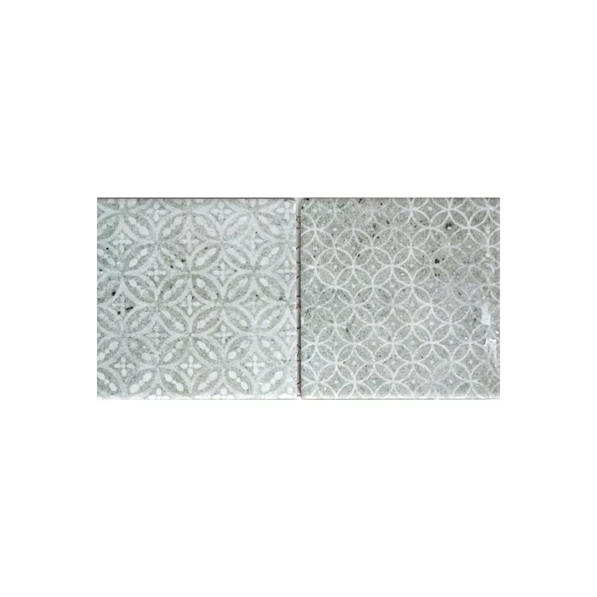 Muster von Keramik Mosaikfliesen Campeche Zementoptik Grau