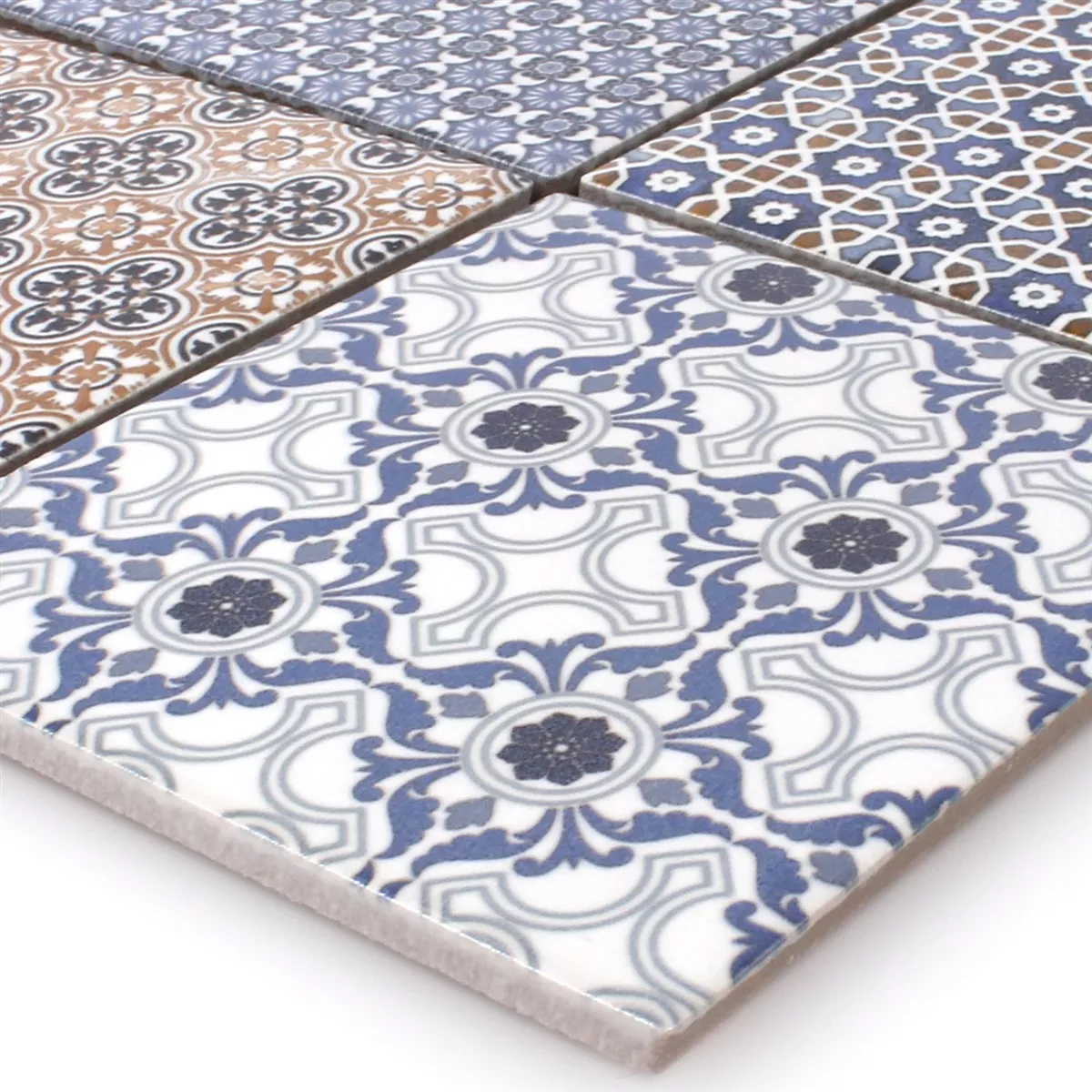 Muster von Keramik Mosaikfliesen Daymion Retrooptik Blau Braun