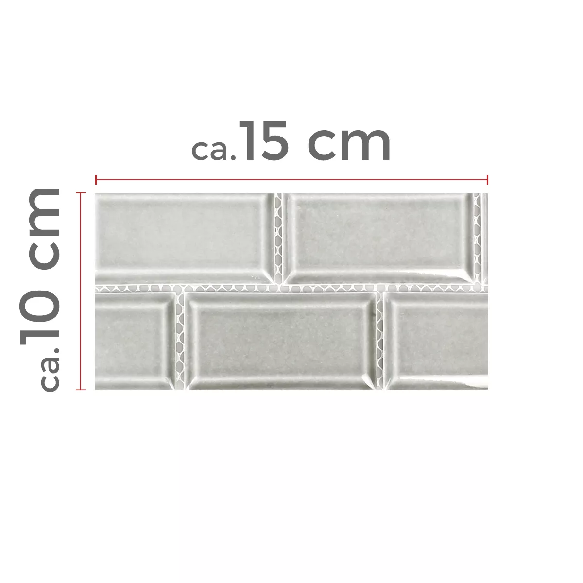 Muster von Keramik Mosaikfliesen Devon Metro Facette Hellgrau