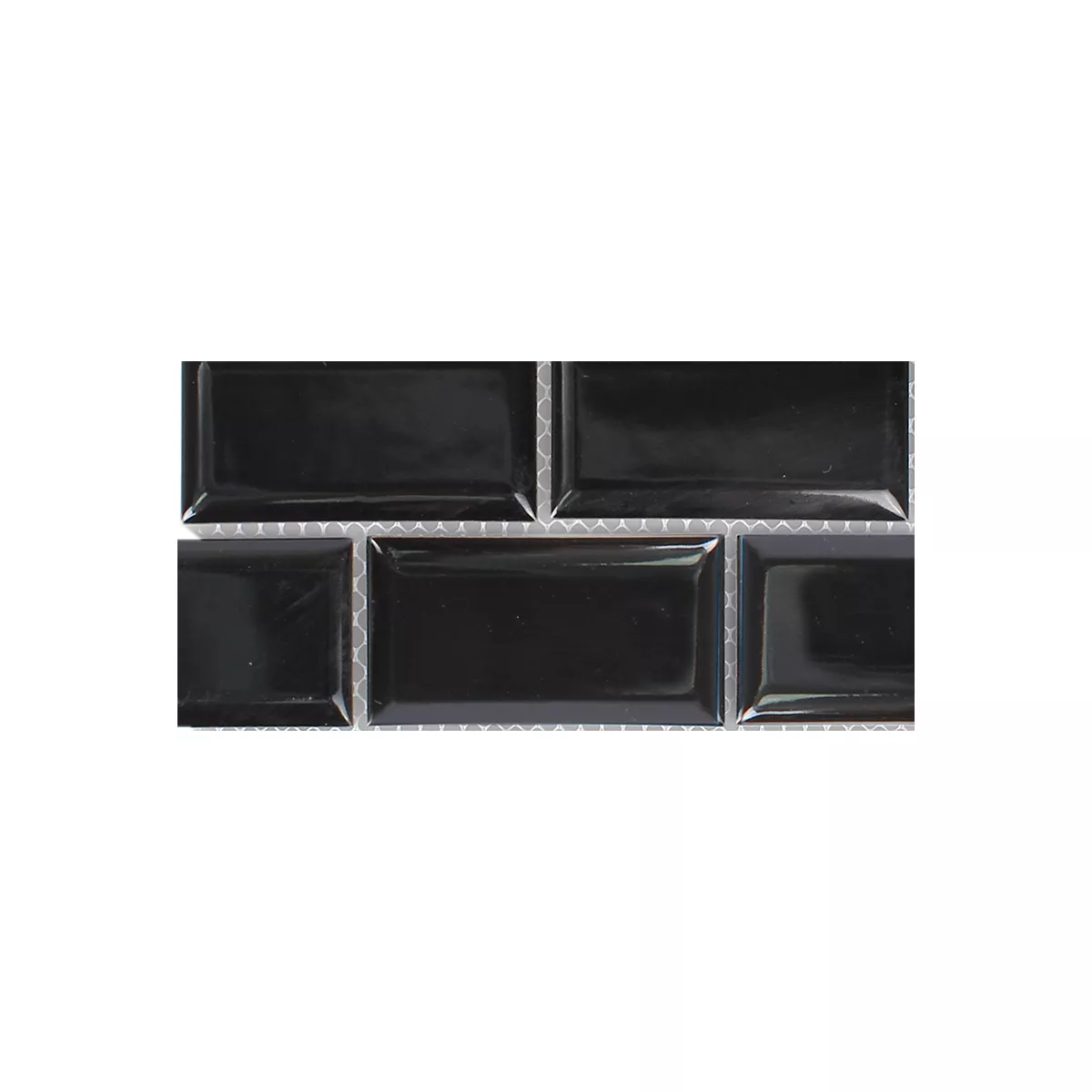 Muster von Keramik Mosaikfliesen Devon Metro Facette Schwarz