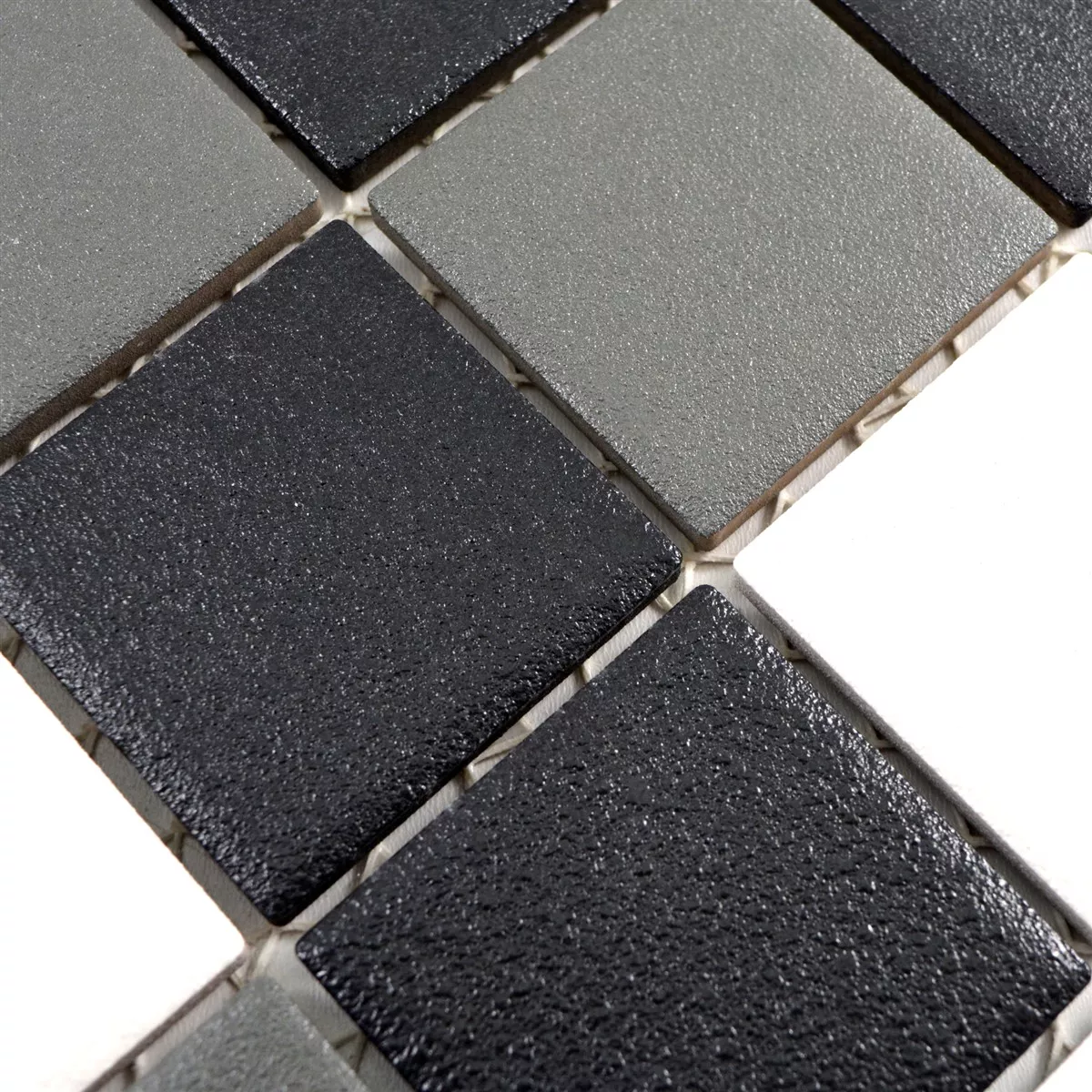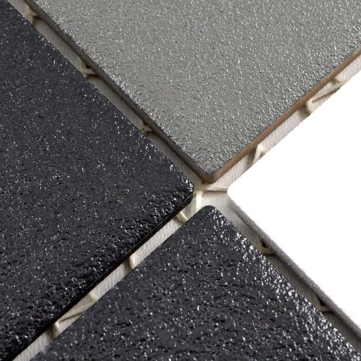 Muster von Keramik Mosaikfliesen Heinmot Schwarz Weiß Metall R10 Q48
