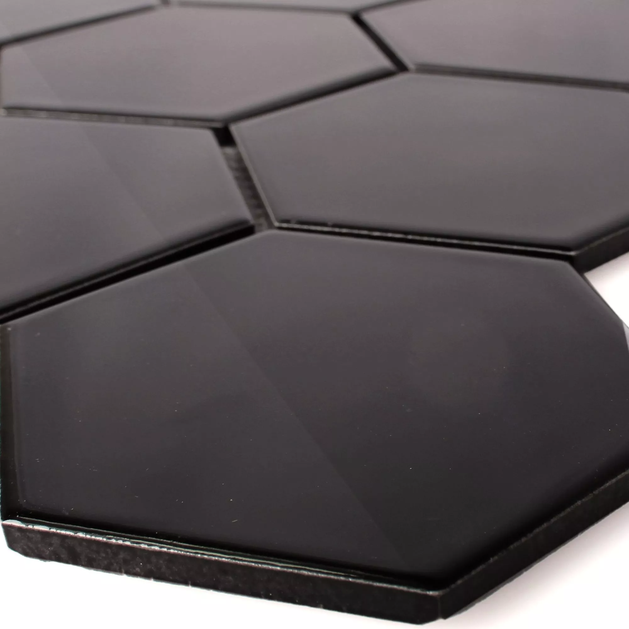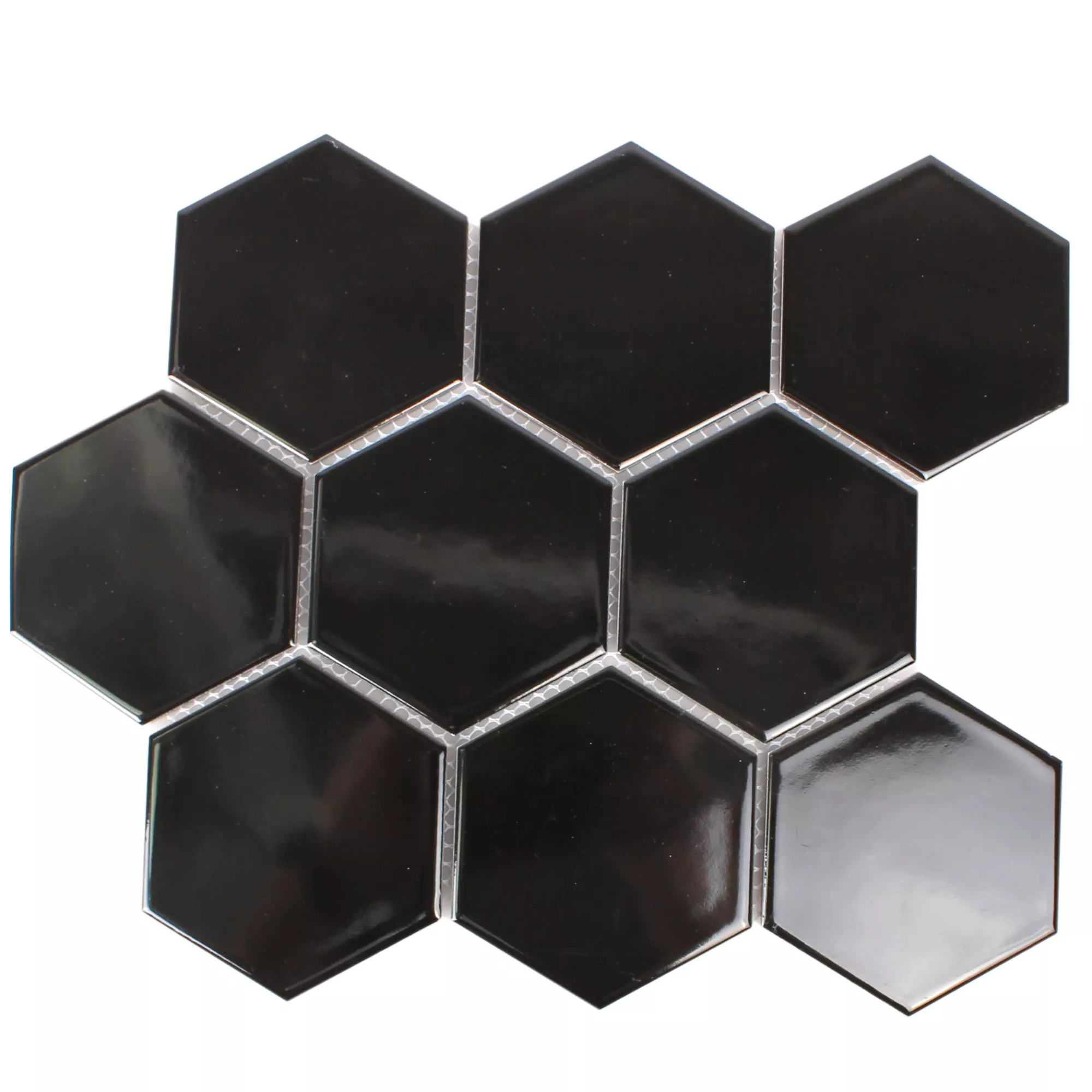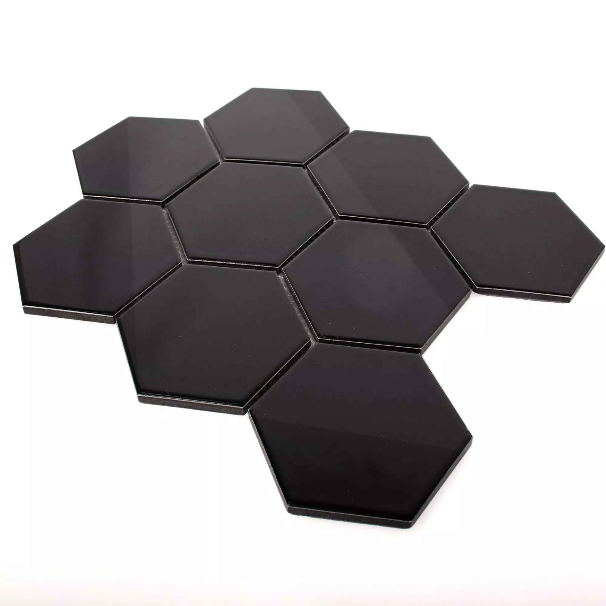 Muster von Keramik Mosaikfliesen Hexagon Salamanca Schwarz Glänzend H95