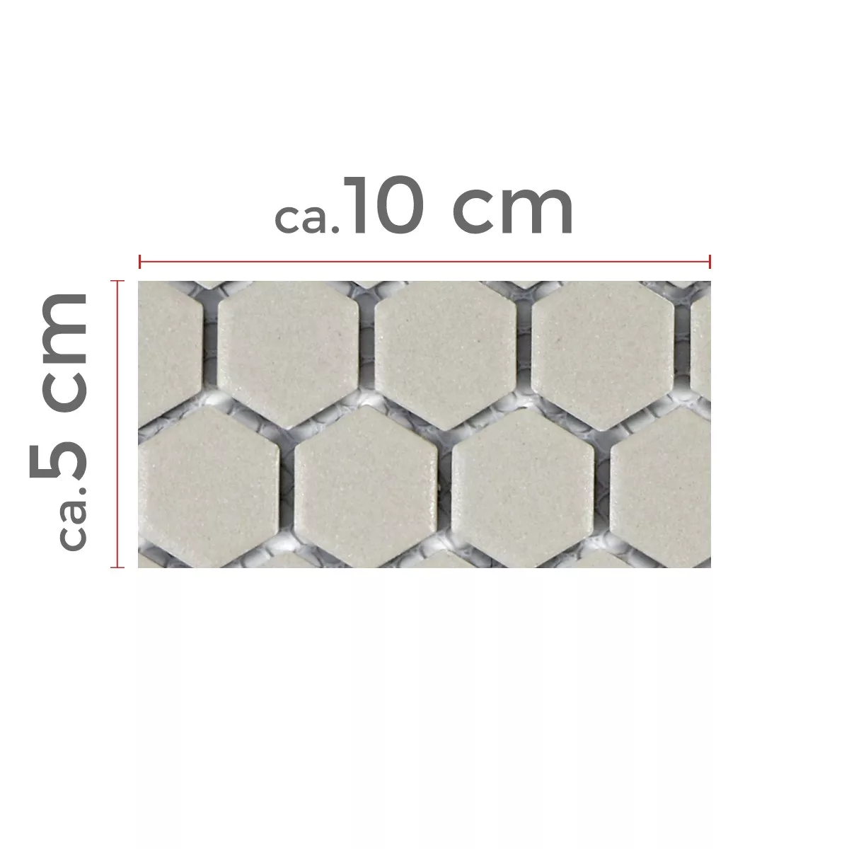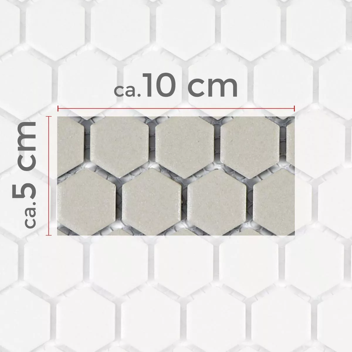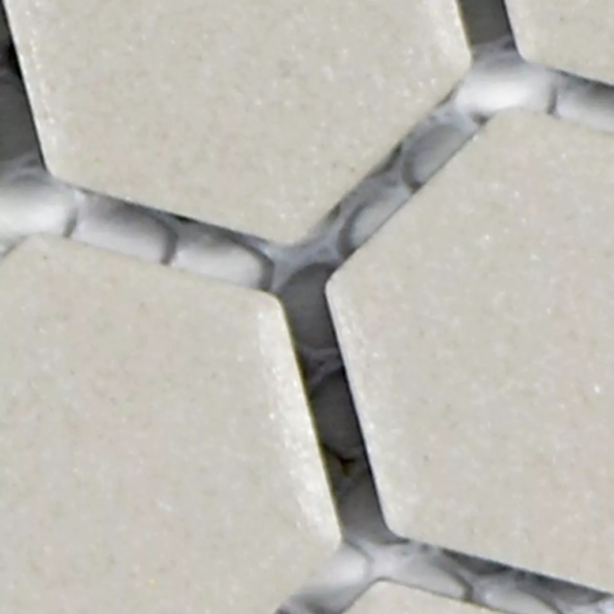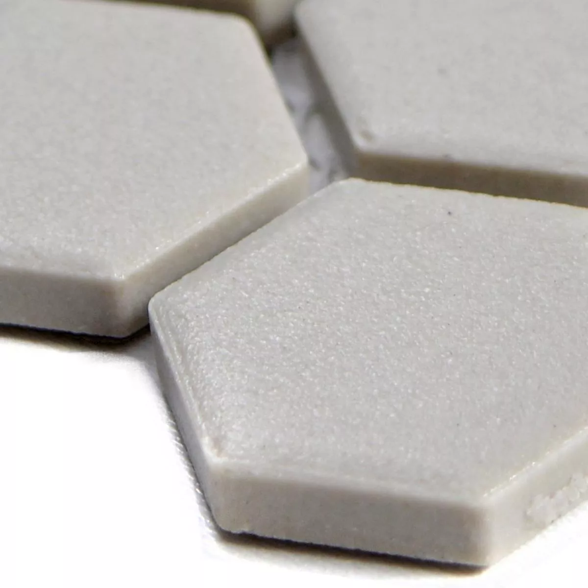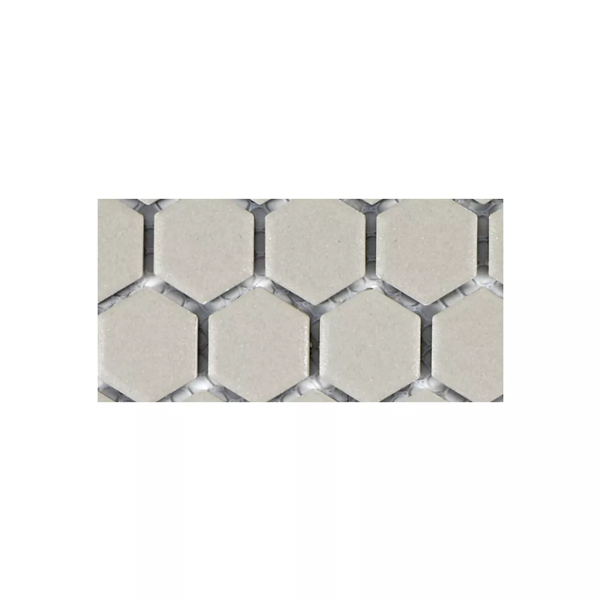 Muster von Keramik Mosaikfliesen Hexagon Zeinal Unglasiert Hellgrau R10B