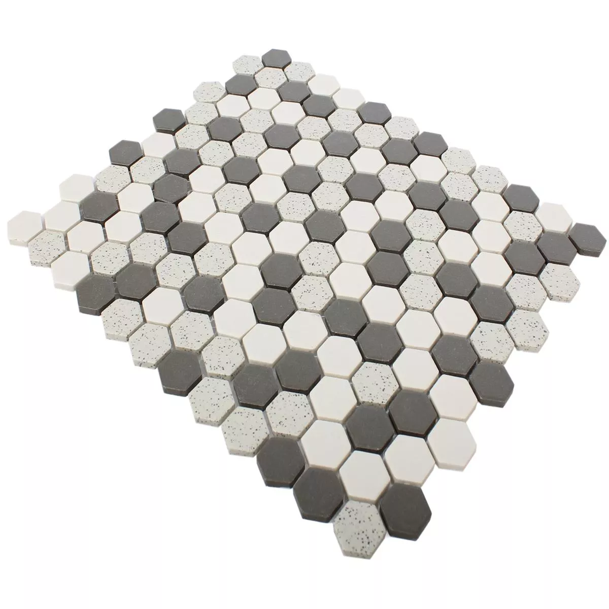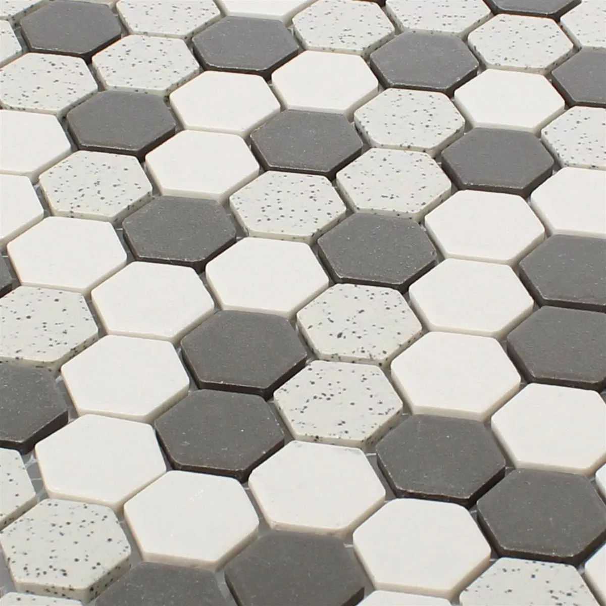 Muster von Keramik Mosaikfliesen Monforte Hexagon Schwarz Grau