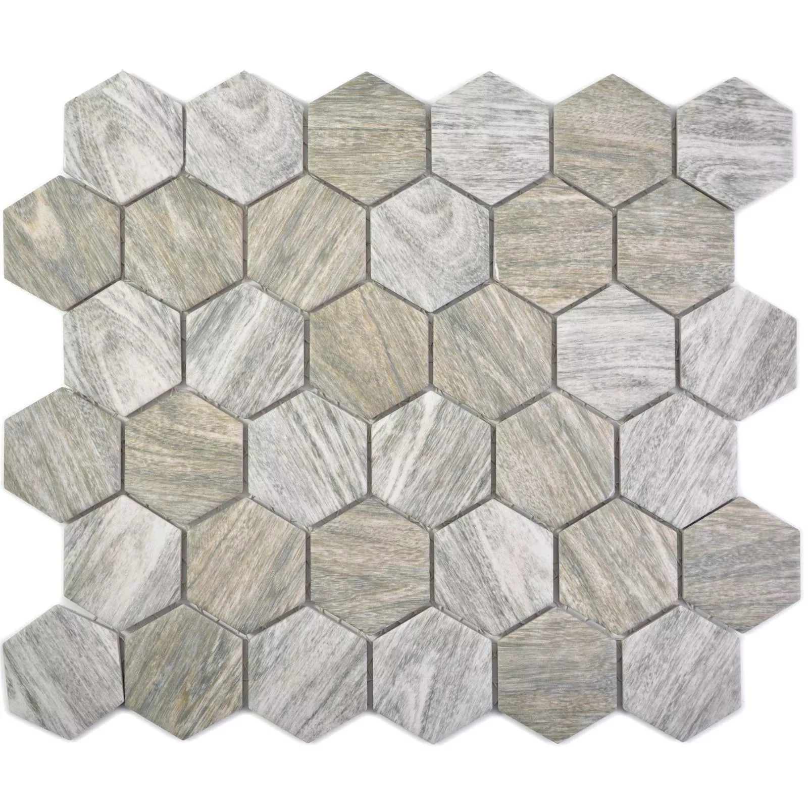 Muster von Keramikmosaik Fliesen Elmshorn Hexagon Steinoptik Grau