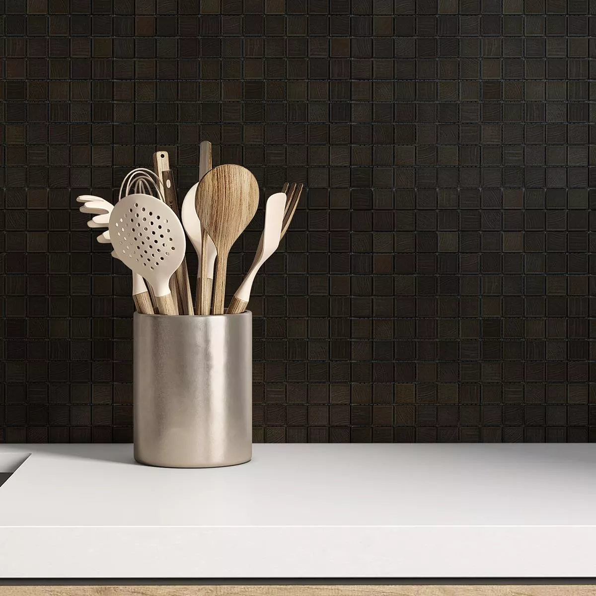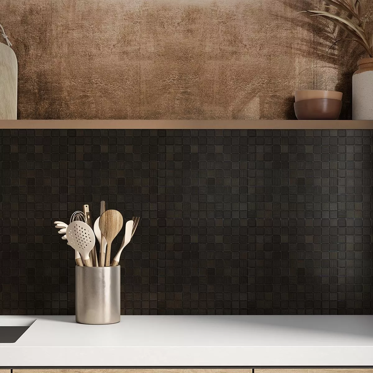 Muster von Keramikmosaik Fliesen Luminara Holzoptik Anthrazit