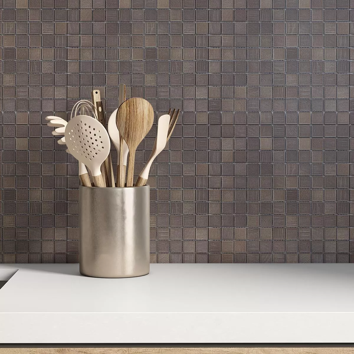 Muster von Keramikmosaik Fliesen Luminara Holzoptik Braun