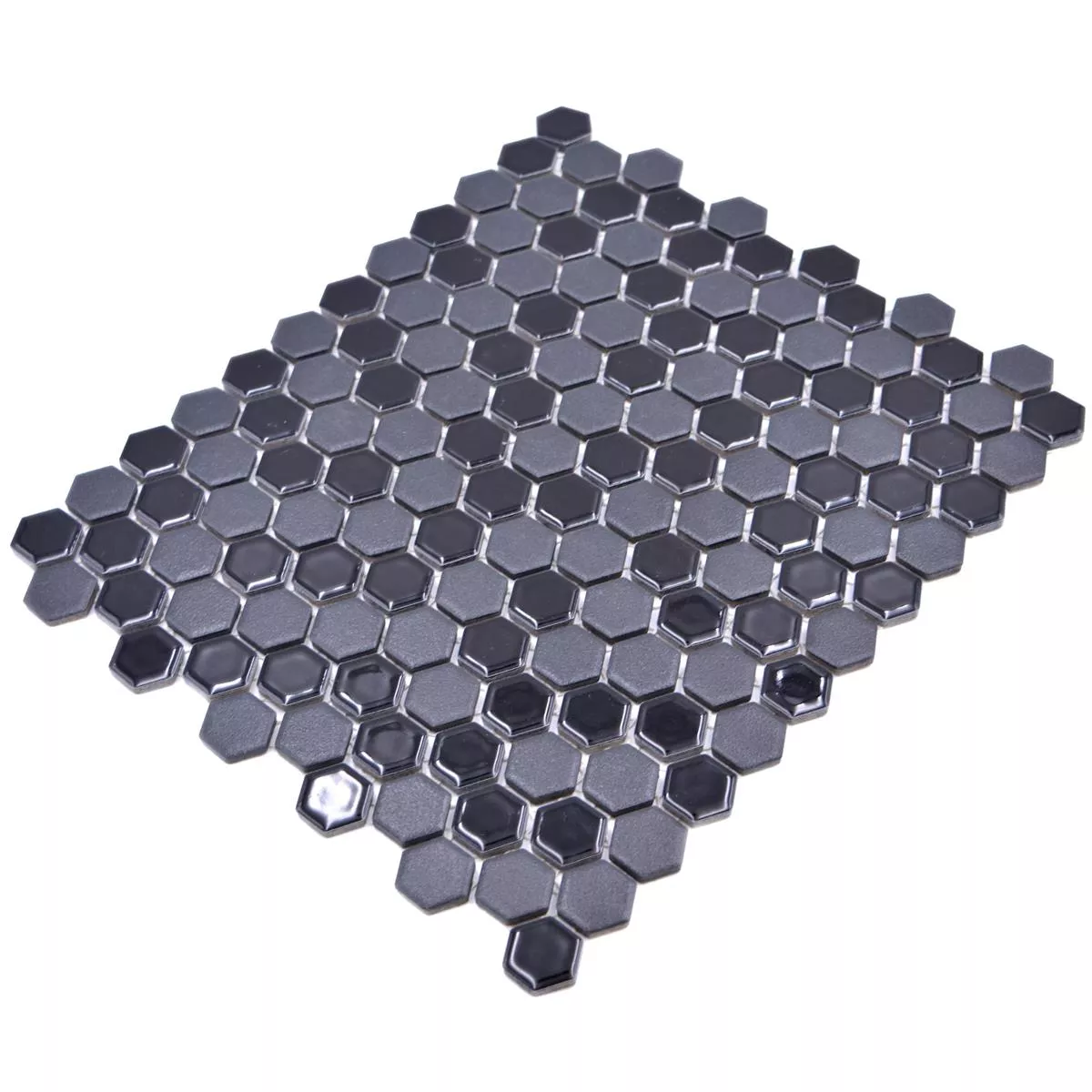 Muster von Keramikmosaik Tripolis Schwarz R10B Hexagon 23