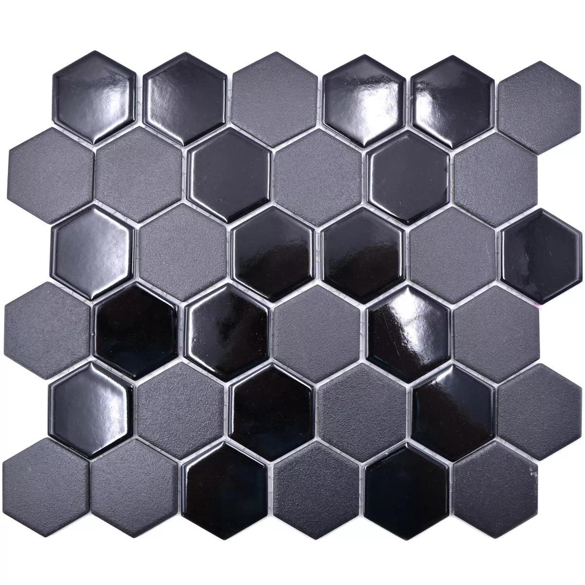 Muster von Keramikmosaik Tripolis Schwarz R10B Hexagon 51